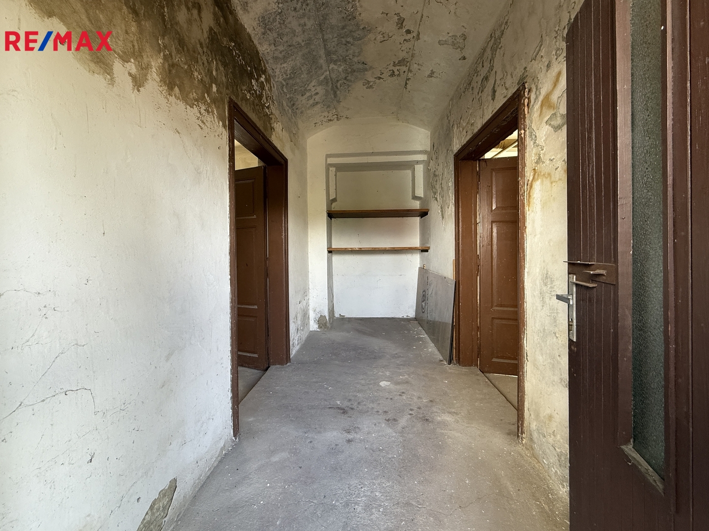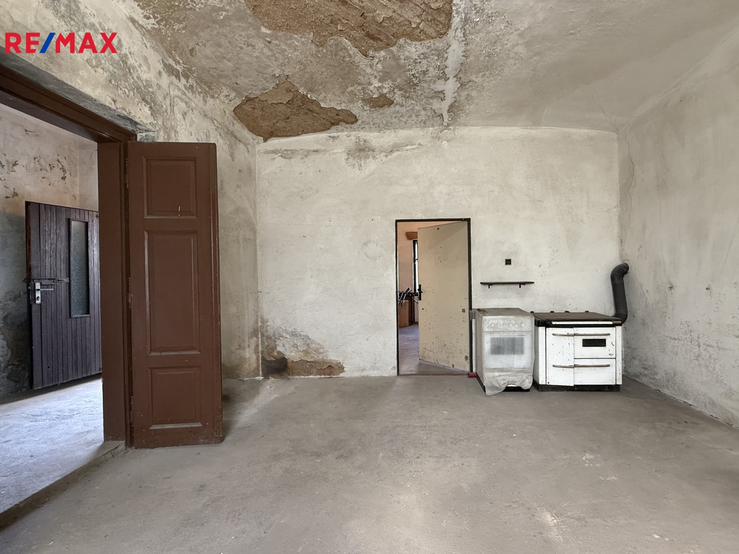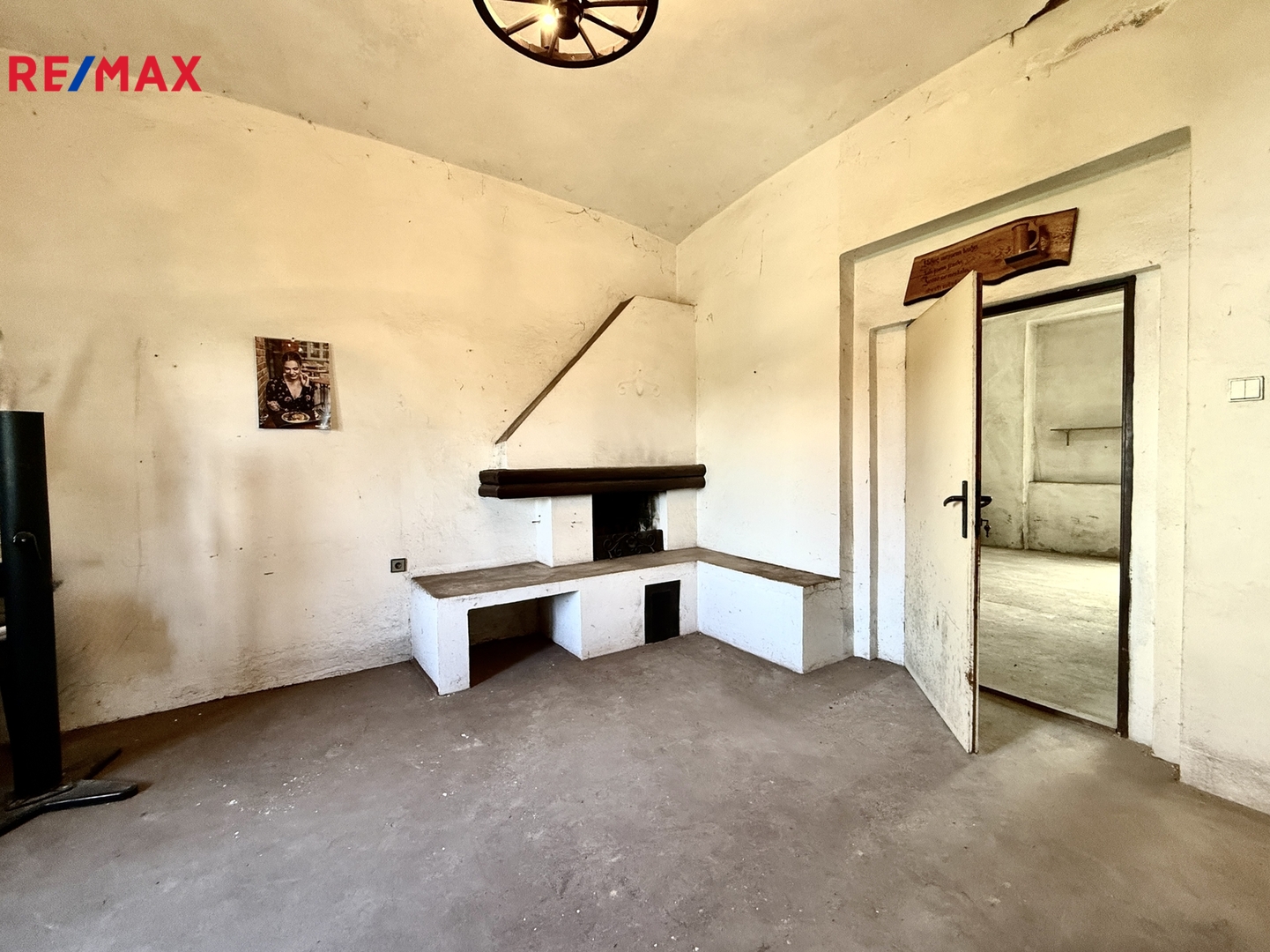 I. NP.: Vstup je z dvorní strany, od zahrady. Vytápění v obytné místnosti je řešeno uhelným sporákem, v kuchyni krbem.