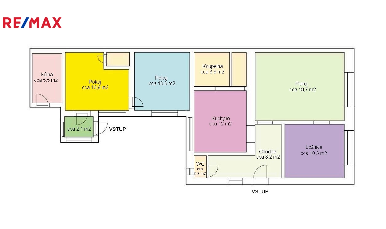 V přízemí domu je vstupní zádveří, odkud se jde do kuchyně (cca 12,3 m2), obývacího pokoje (cca 19,7 m2) a dále do ložnice (cca 10,3 m2). Z kuchyně je vstup do koupelny a komory. Přes dvůr je přistup do dalších dvou pokojů (cca 10,9 m2 a 10,6 m2). Nad přední částí domu je půda (cca 52 m2).