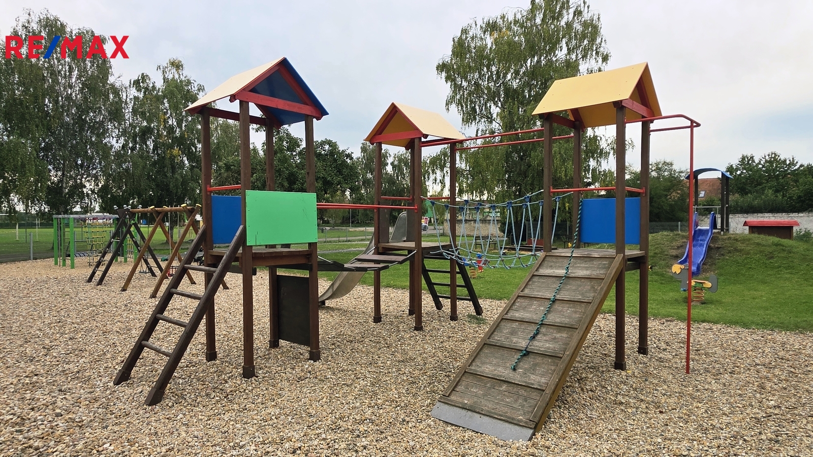 V obci funguje obchod, mateřská a základní škola a přímo za domem je velké sportovní a dětské hřiště.