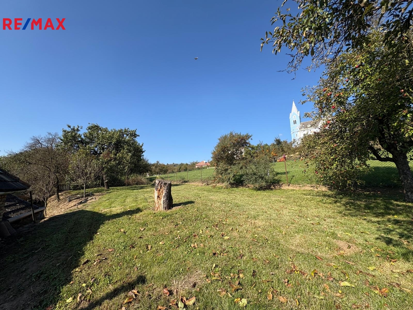 Pozemek: stodola, dvůr a zahrada ve svahu s pěkným výhledem. Možnost rozšíření vjezdu a parkování více aut.