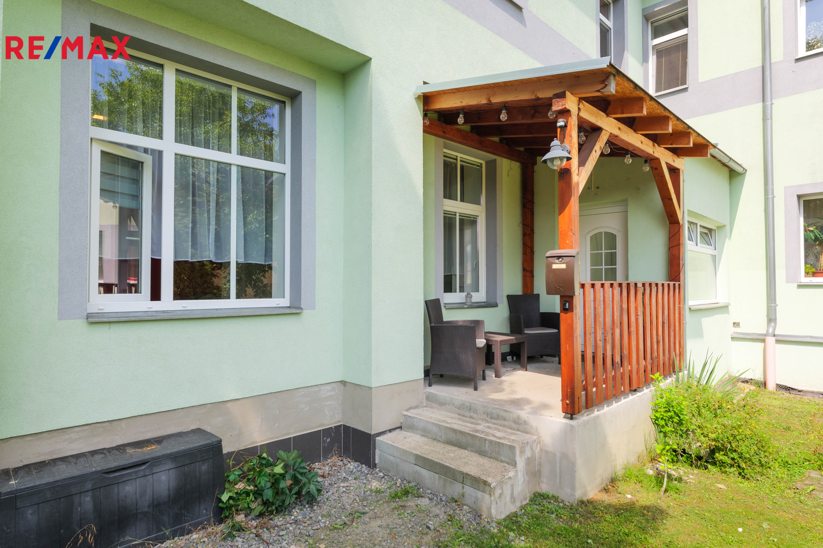 Byt prošel v letech 2017–2024 modernizací a působí světlým, vzdušným a velmi příjemným dojmem. Má samostatný vchod se zastřešenou terasou (4,5 m²), kde si můžete vychutnat ranní kávu nebo si večer posedět s přáteli.