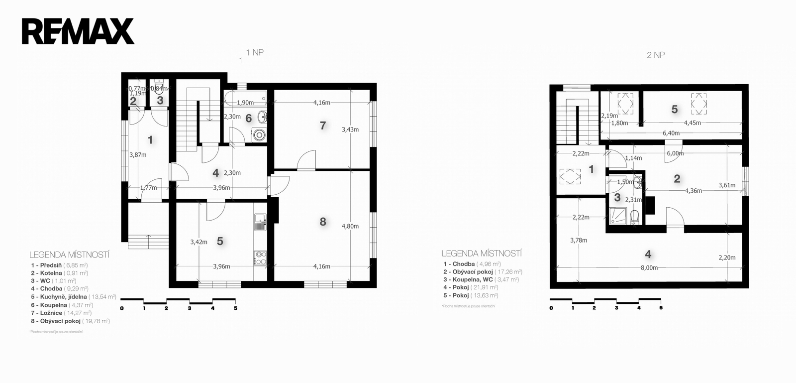 • Přízemí: předsíň (6,85 m²), chodba (9,29 m²), prostorná kuchyně s jídelnou (13,54 m²), obývací pokoj (19,78 m²), neprůchozí pokoj (14,27 m²), koupelna s vanou (4,37 m²), toaleta (1,01 m2), kotelna (0,91 m2).