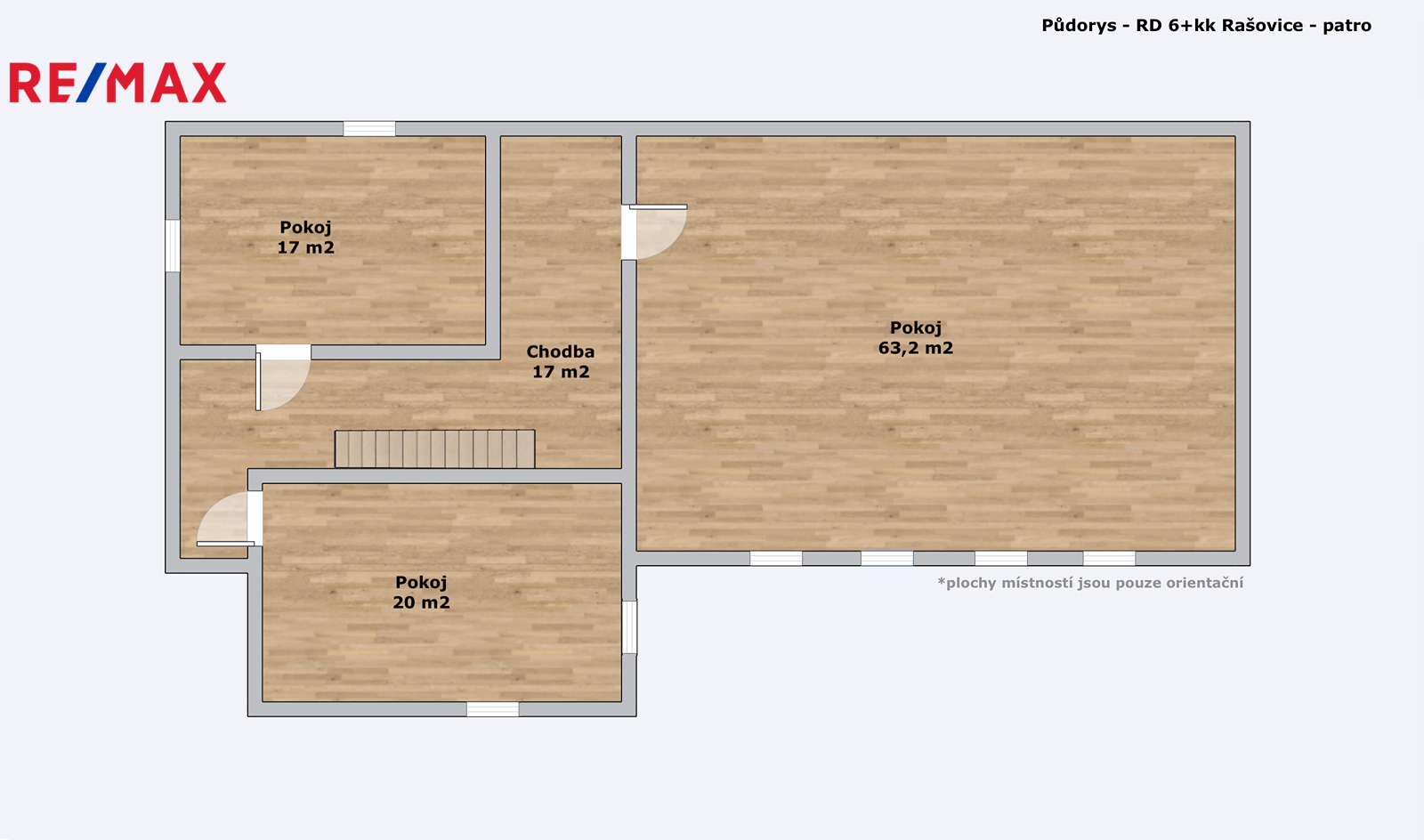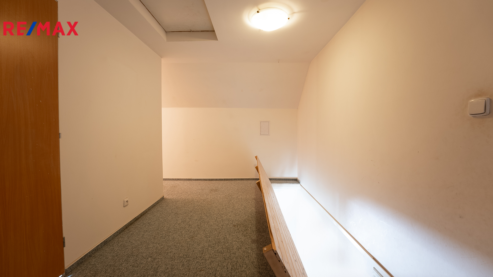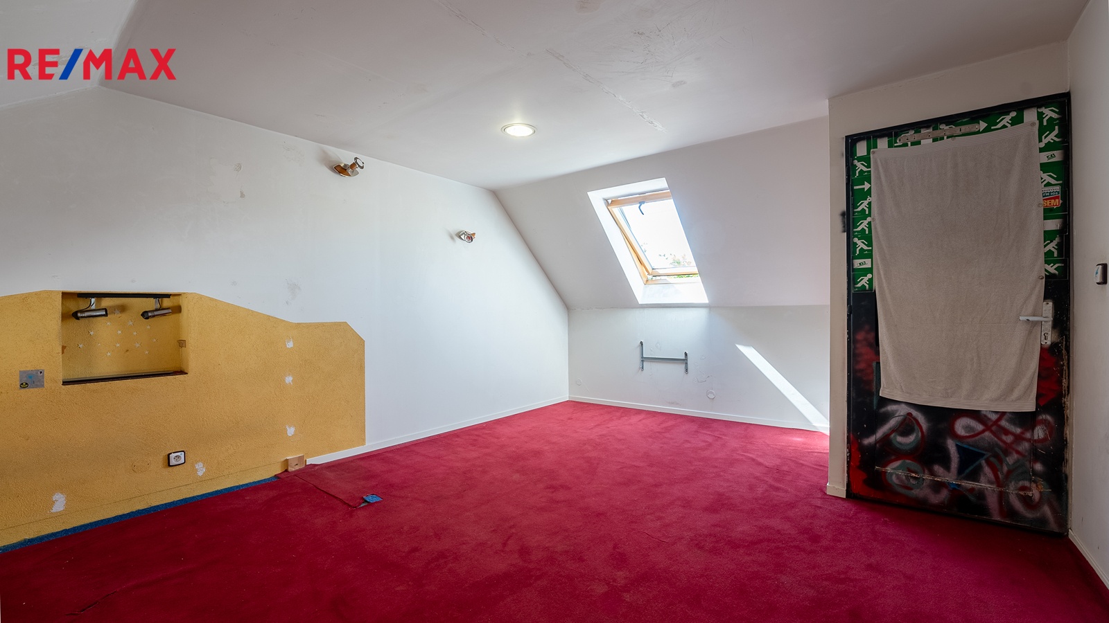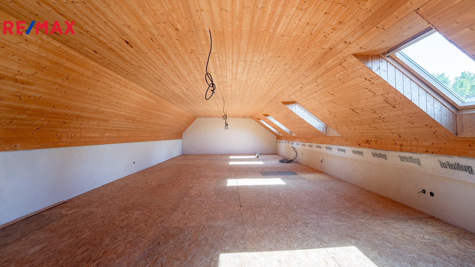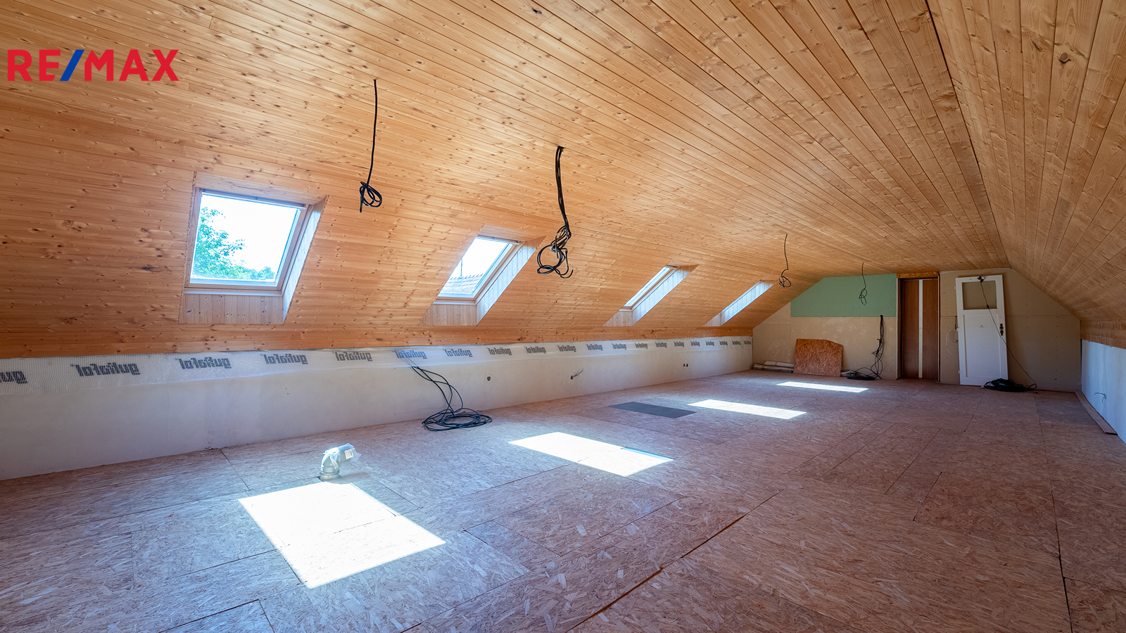 V podkroví jsou další 3 pokoje, z nichž jeden je navržen pro vybudování sociálního zařízení a kuchyňského koutu. Tímto řešením se zde nabízí možnost vytvoření dvou samostatných bytových jednotek s dispozicí 3+kk, což představuje ideální variantu pro rodinné bydlení i vícegenerační bydlení .