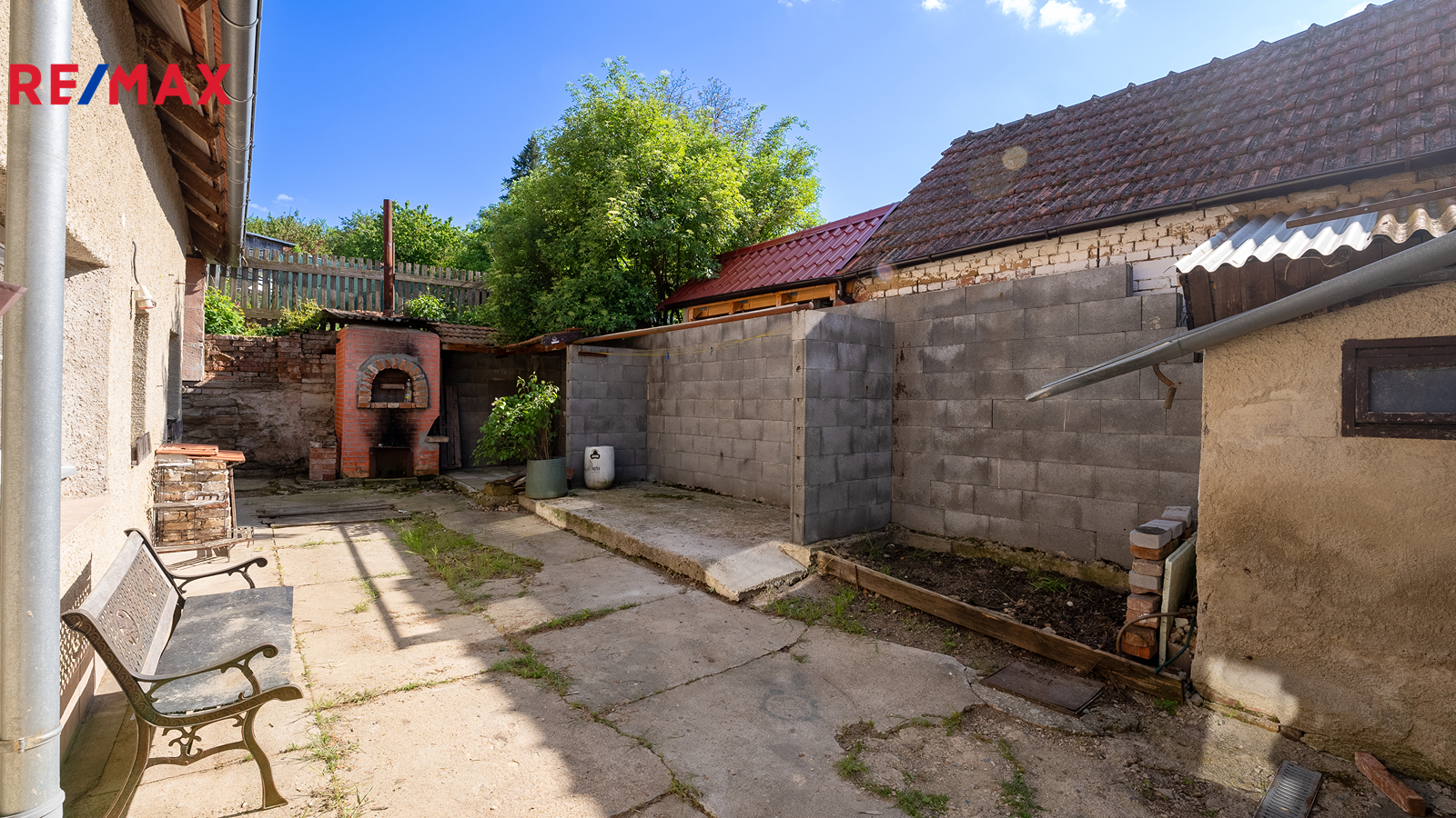 Dvorek je dostatečně prostorný a umožňuje stavbu pergoly pro příjemné posezení a využití stávající udírny. K dispozici je i sklep a dílna, které potěší každého kutila. Z dvorku se po schodech dostanete na menší zahradu, kde máte možnost pěstovat vlastní zeleninu či vybudovat bazén nebo prostor pro hry dětí.