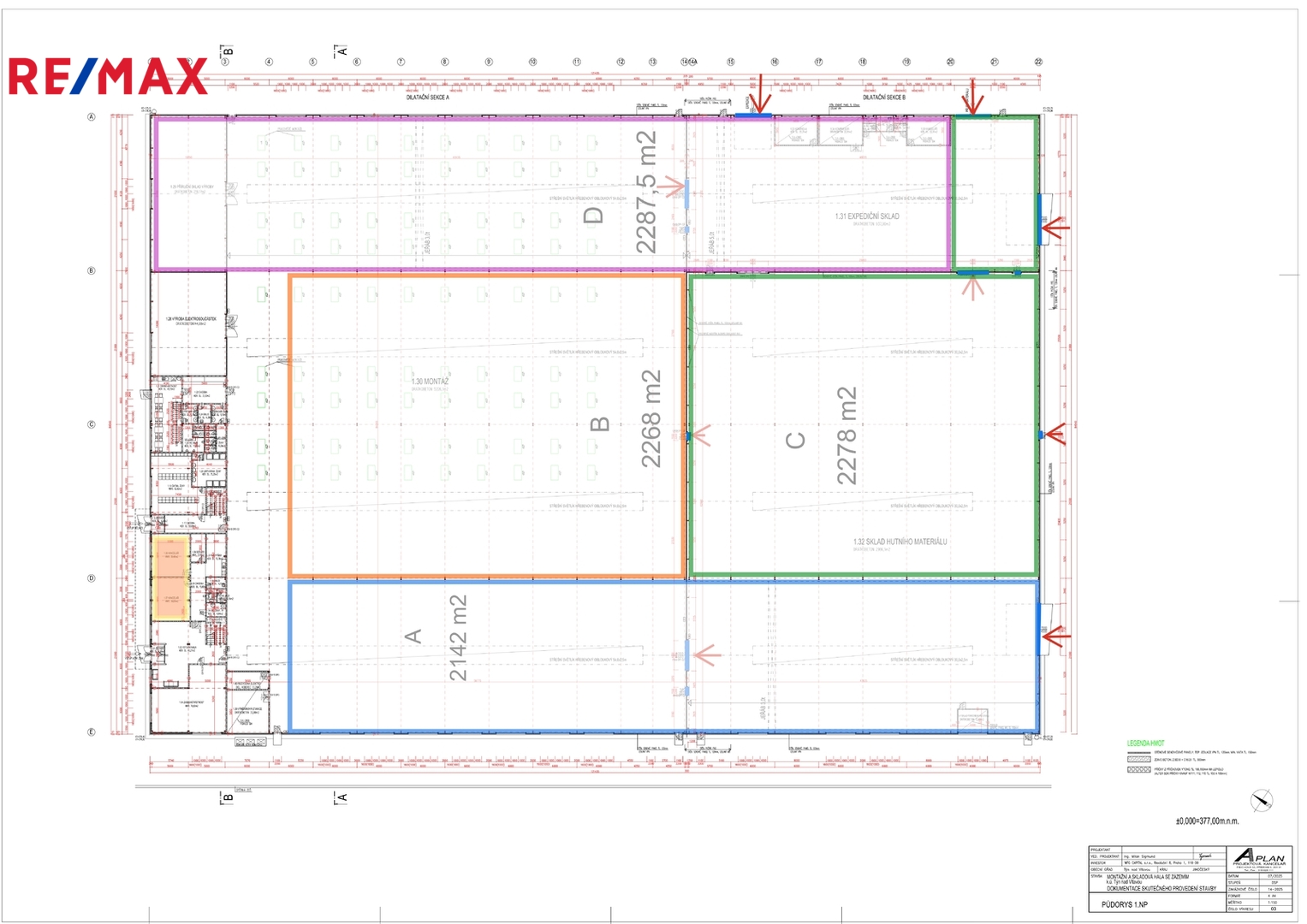 Je rovněž možné pronajmout pouze část A (o velikosti 2.142m2) nebo části B+C (o velikosti 4.546m2) dle přiloženého plánku.