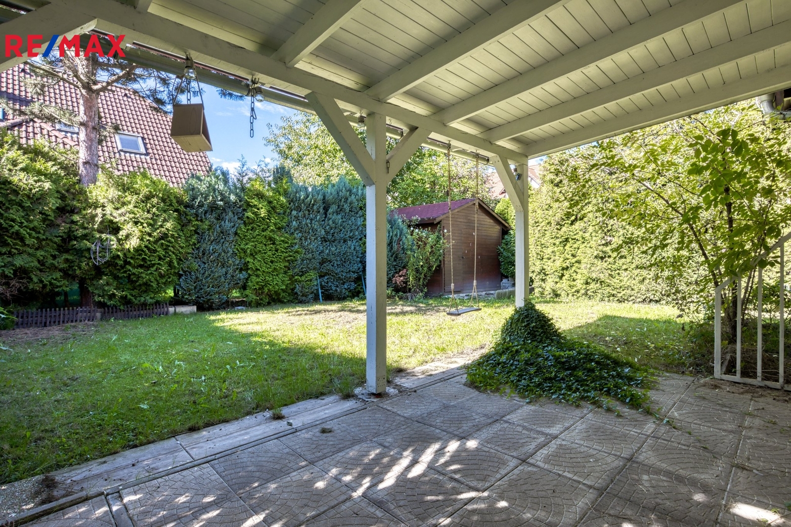 K domu náleží menší rovinatá zahrada, která díky obvodové vzrostlé zeleni poskytuje příjemné soukromí. Na zahradě je kryté parkovací stání a dřevěný zahradní domek.