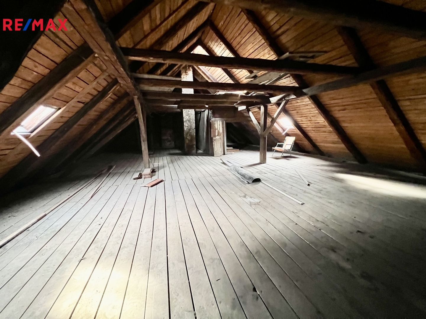 Dále dům nabízí velkorysou půdu o ploše přibližně 130 m², kterou lze přestavět na další bytovou jednotku – například moderní mezonetový byt. Tím se výrazně rozšiřují možnosti využití této nemovitosti jak pro bydlení, tak pro investiční účely.