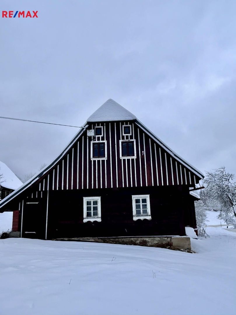 - Částečně roubená a částečně zděná chalupa stojí na zastavěné ploše 185 m² a je udržovaná, s prostorem pro citlivou rekonstrukci. Některé prvky už jsou vyřešeny – nová elektroinstalace, nová střecha nad roubenou částí a nová podlaha v hlavní obytné místnosti (světnici).