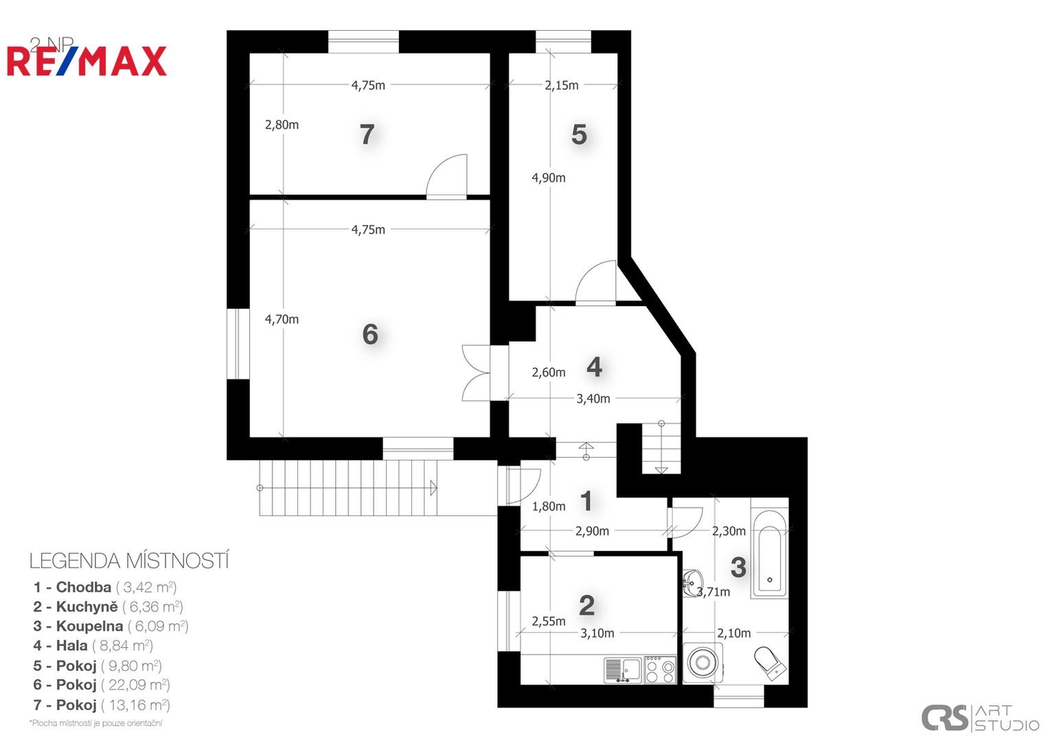 V obou patrech, která mají samostatný venkovní vchod, je prostorná chodba a hala, které se dají prakticky využít.