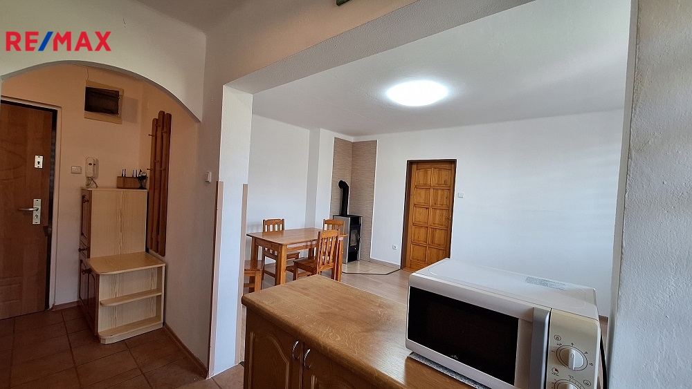 Vybavení bytu je částečné. Kuchyně je vybavena základními spotřebiči, včetně sporáku s elektrickým vařičem a troubou. Koupelna je prakticky zařízena vanou, umyvadlem a WC. V celém bytě jsou plastová okna s žaluziemi, která přispívají k úsporám na energiích. Vytápění je zajištěno elektrickými akumulačními kamny, případně je možné využít krbová kamna v obývacím pokoji pro příjemnou atmosféru.