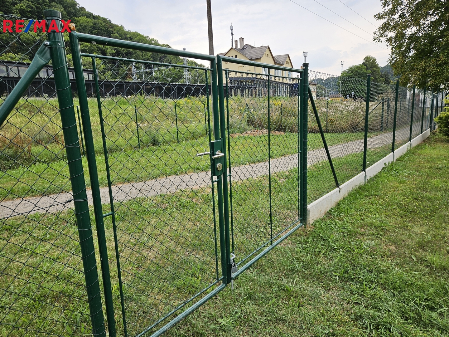 Za bránou oplocení zahrady je další pozemek 175 m2, neoplocený, využívaný veřejností jako cesta na nádraží. Tento pozemek je územním plánem obce plánován k vybudování místní komunikace se sítěmi.