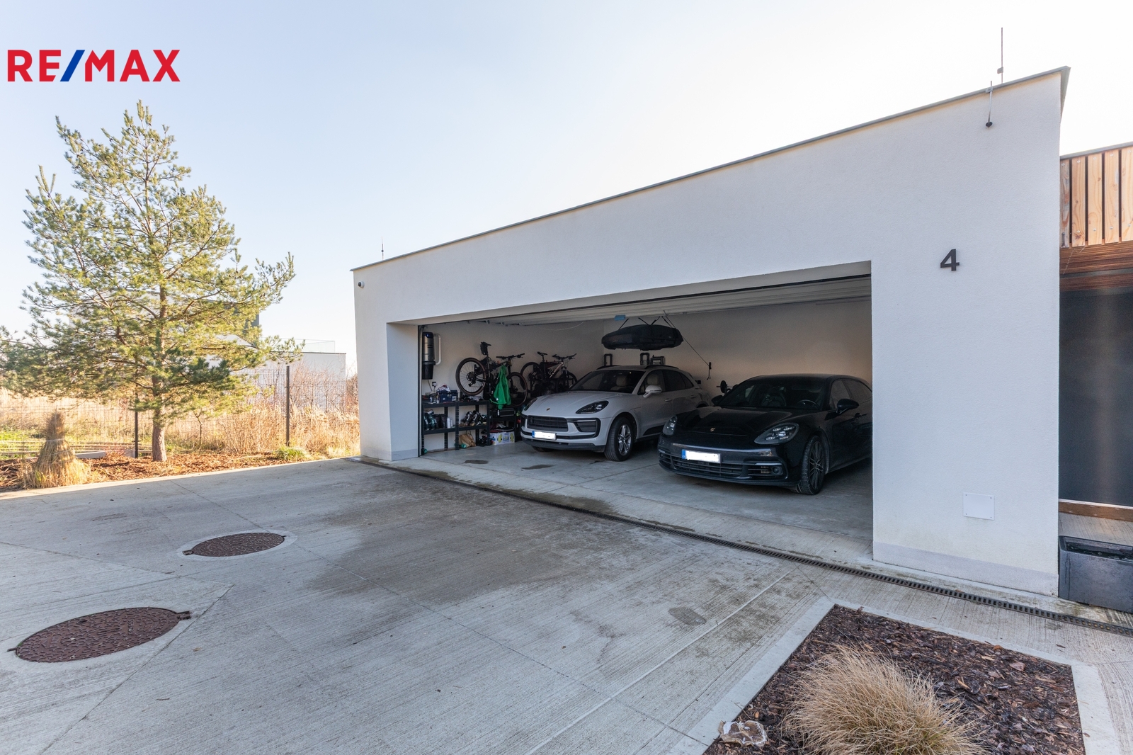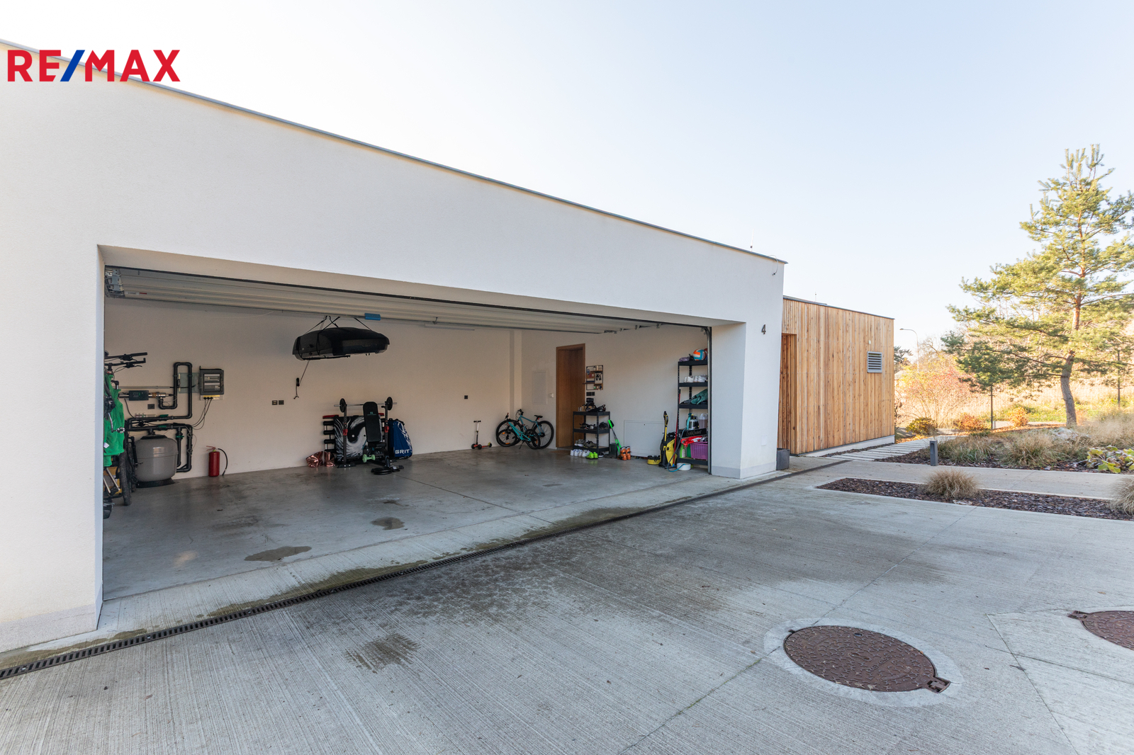 Jednopodlažní vila s celkovou plochou 276 m2 (dům 216 m2 + terasa s bazénem 65 m2) má obývací (televizní pokoj) s navazující prostornou jídelnou a kuchyní (celkem o výměře 61 m2), hlavní ložnici se šatnou a koupelnou s WC, tři pokoje, koupelnu s WC, chodbu s vestavěnými skříněmi, tělocvičnu/hernu, garáž pro tři vozy (49 m2), technickou místnost a samostatné WC.
