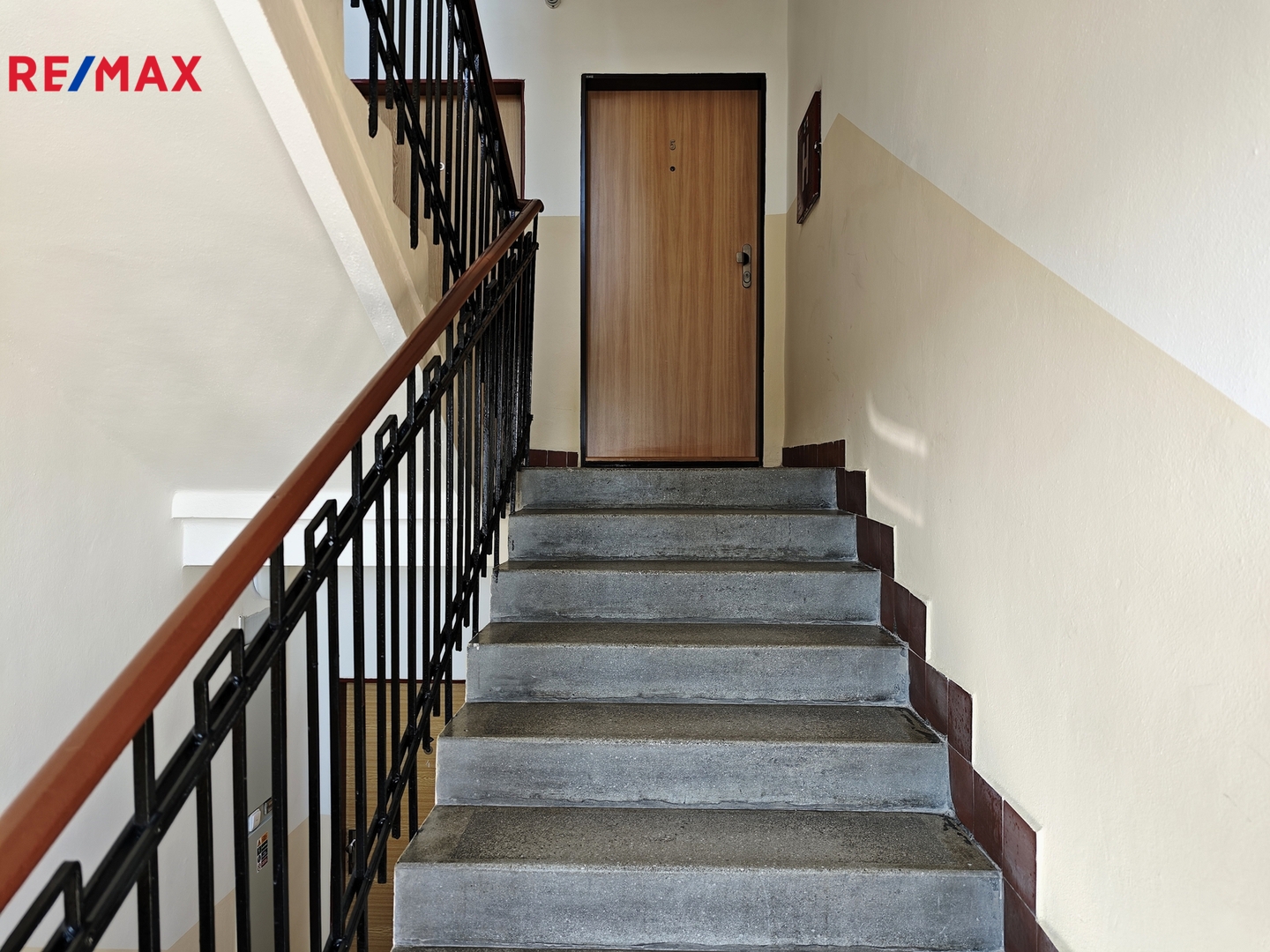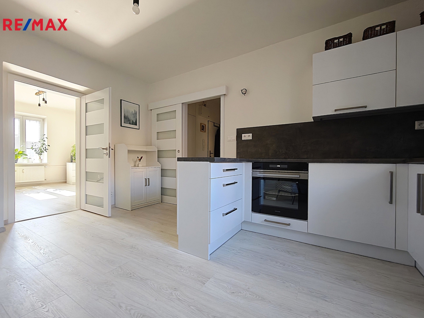 Kuchyň s praktickou kuchyňskou linkou (el. varná deska, trouba, možnost vestavné myčky), prostorný pokoj s vestavěnou skříní, koupelna s oknem (sprchový kout, pračka, WC) a předsíň s vestavěnou skříní. K bytu náleží sklep o ploše 4 m².