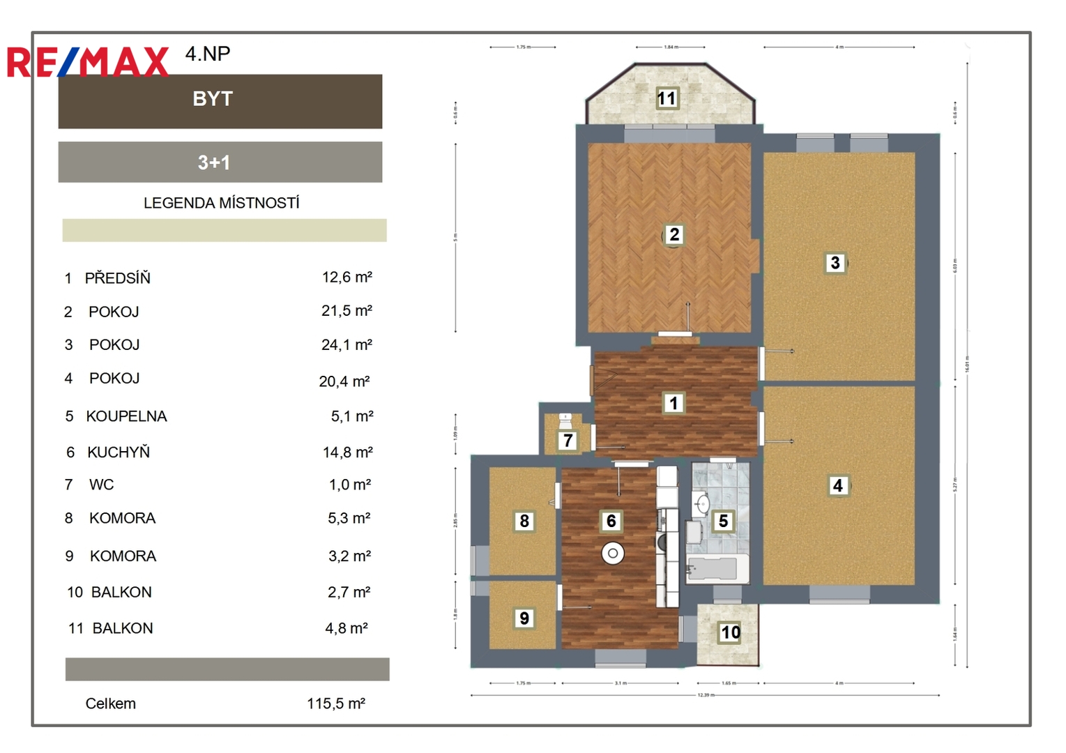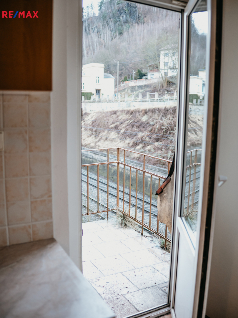Nabízíme k prodeji prostorný byt 3+1, 108 m2, ve 4.N.P., se dvěma balkóny - přední 4,8 m2 a zadní 2,7 m2, s přiděleným sklepním prostorem 3,7 m2 a poměrným podílem na ostatních společných částech budovy a přilehlých pozemků, v bytovém domě na Labském nábřeží 49, v Děčíně XI - Horním Žlebu, který se nachází cca 12-15 minut pohodovou pěší chůzí od středu Děčína - na Tyršovu ulici, nebo pod Děčínský zámek. Příjezdová komunikace okolo domu je asfaltová, sloužící také jako cyklostezka směrem do Dolního Žlebu a pak dál do Německa. Dům, před kterým se nachází i menší zatravněný pozemek, je vyvýšen oproti této komunikaci cca o 4 m a oddělen 3 m vysokou pískovcovou zdí, v jejímž středu je zabudováno přístupové schodiště. Tato vyvýšená poloha poskytuje nádherný výhled do okolí, především na protékající řeku Labe, která teče podél přístupové komunikace a vlévá se do začínajícího "Labského kaňonu". Dům je v dobré kondici, vyžadující jen menší opravy, na kterých současný majitel intenzivně pracuje - např. výmalba chodeb a schodišť, oprava balkónů a fasády z přední části domu, oprava oplocení..... Tento byt již prošel vnitřními opravami, včetně výměny oken za plastová, vytápěn je plynovým kombinovaným kotlem napojeným na etážové topení s radiátory a současně je zdrojem i pro ohřev užitkové vody. Byt je plně funkční a po prodeji ihned k dispozici k nastěhování.