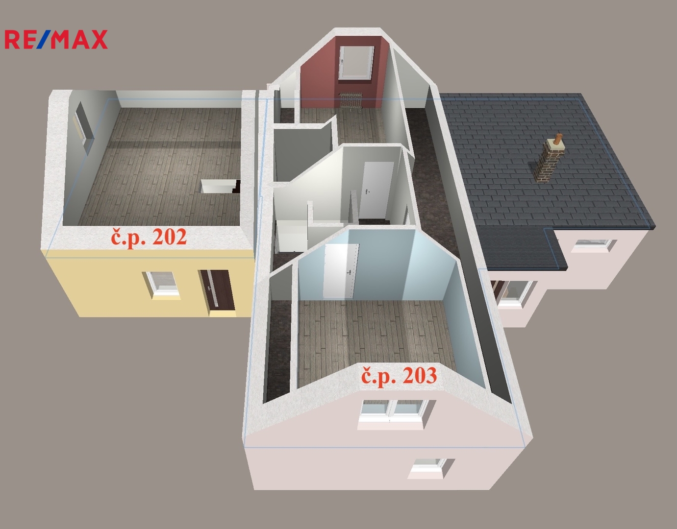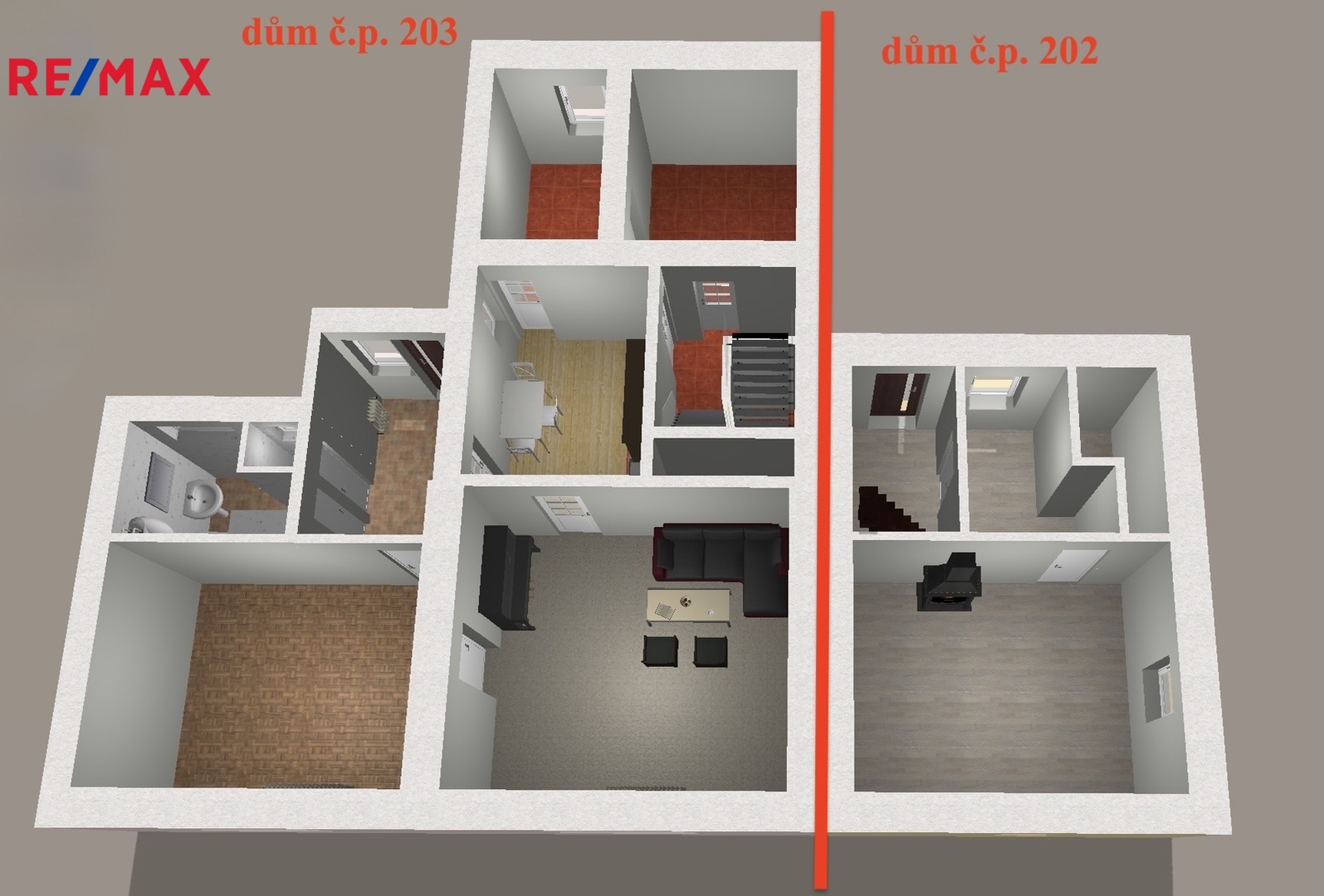 Budova navazuje na sousední dům č.p.203, který je rovněž ke koupi (samostatný inzerát), má stejného spolumajitele.
