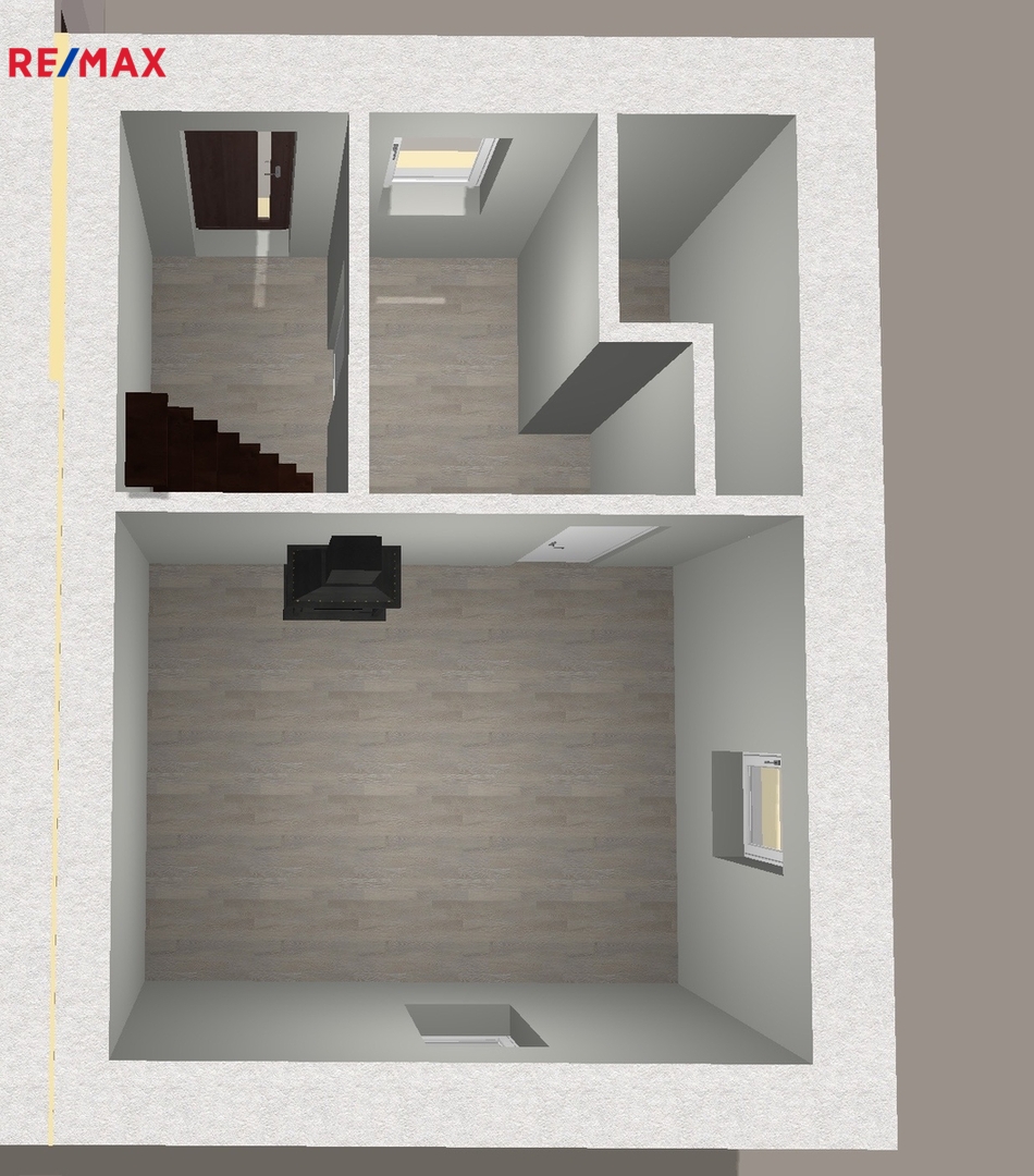 Nemovitost o velikosti 2+1 má jedno nadzemní podlaží a podkroví, ze dvou třetin je podsklepená.