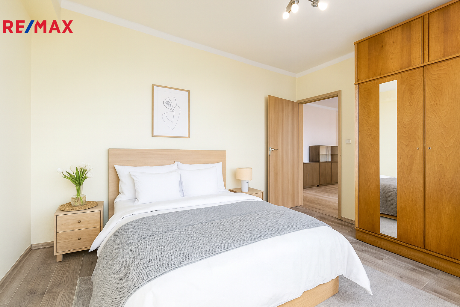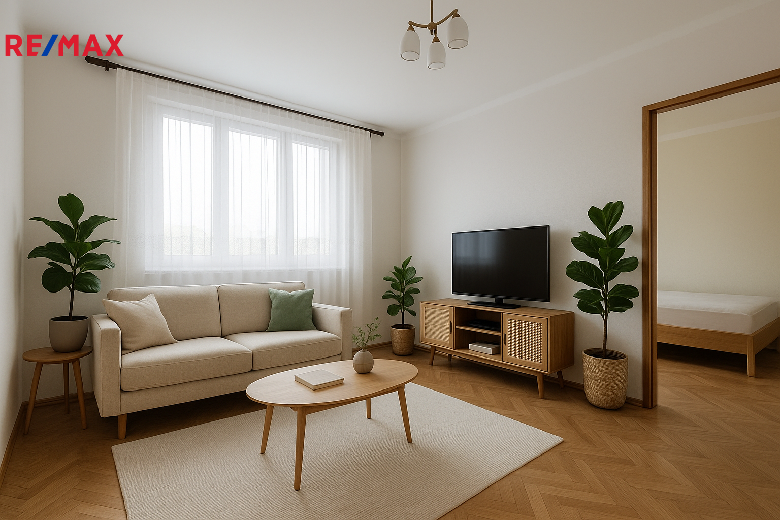 Byt je světlý, s praktickou komorou a lodžií. Kuchyně je vybavena udržovanou kuchyňskou linkou, obývací pokoj nabízí dostatek prostoru pro rodinné posezení. Ložnice je klidným místem s výhledem na město. Koupelna má zděné jádro, kuchyně i koupelna prošly renovací přibližně v roce 2005.
