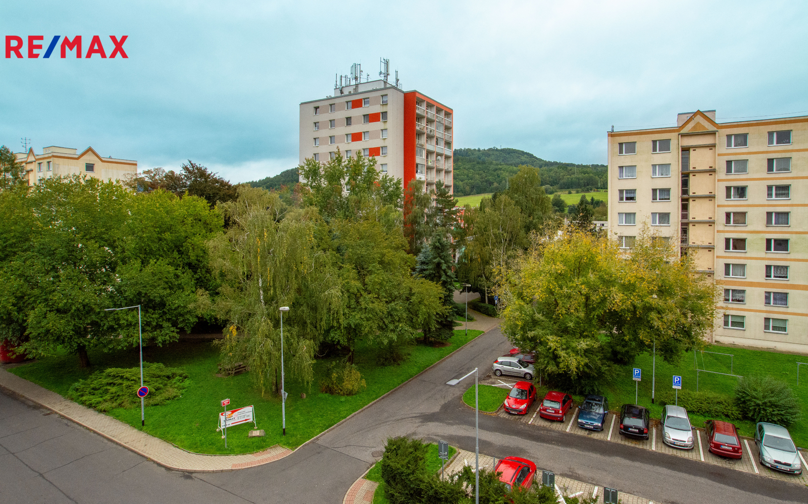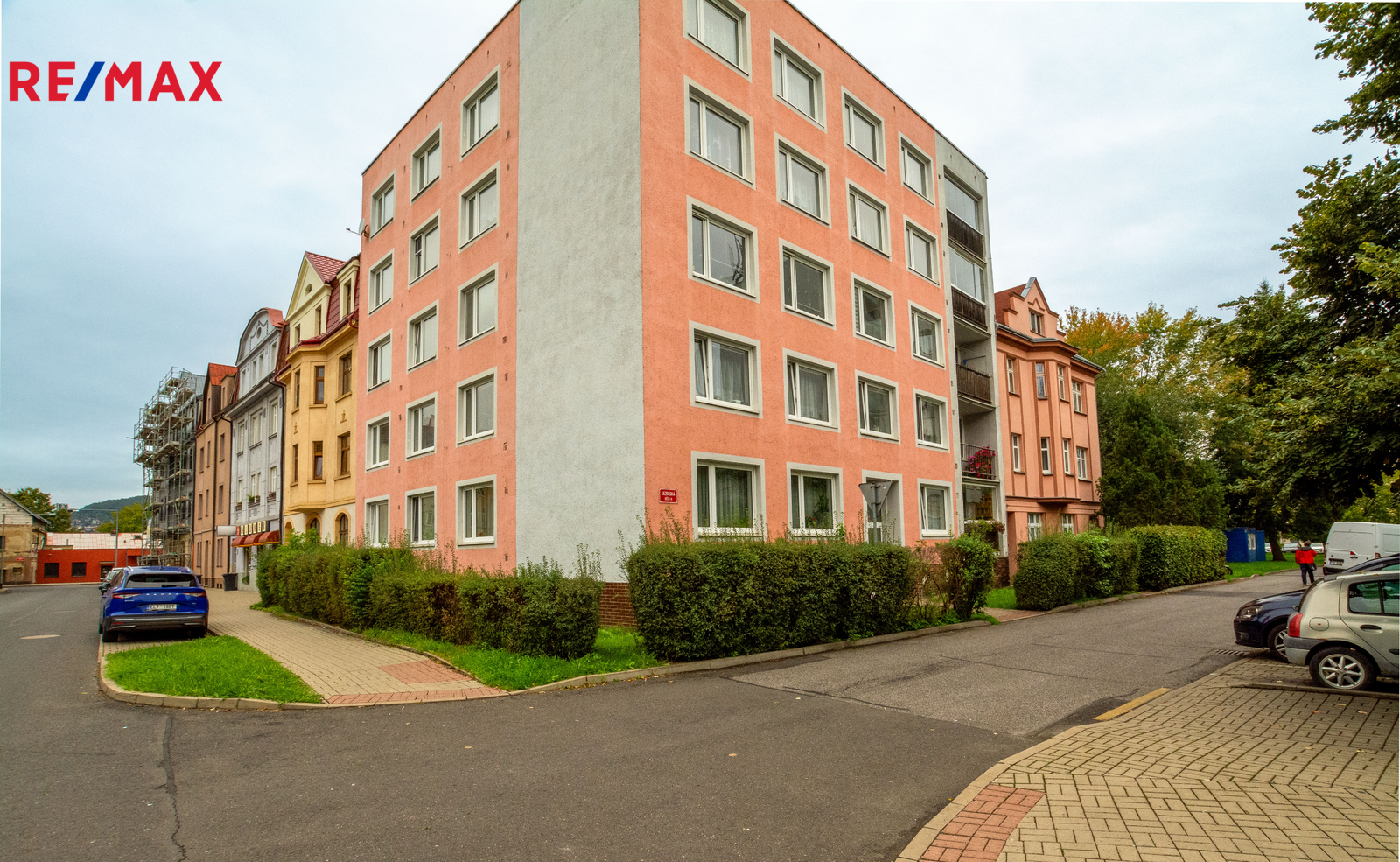 Byt 2+1 v pátém patře bytového domu na začátku ulice Jezdecká v Děčíně na Starém Městě.