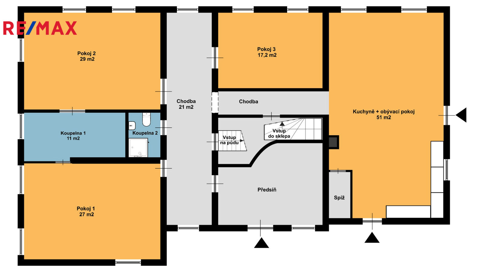 Srdcem chalupy je velká centrální (společenská) místnost s kuchyní a propojená s venkovním prostorem dvěma vstupy. Dále má chalupa tři velké pokoje a dvě koupelny ( z toho jednu v přípravě). Chalupa je částěčně podsklepená., klenutý sklípek v suterénu nabízí možnost vybudování vinného sklípku. Velkorysé, obrovské dvoupatrové půdní prostory nabízí další velké možnosti využítí.