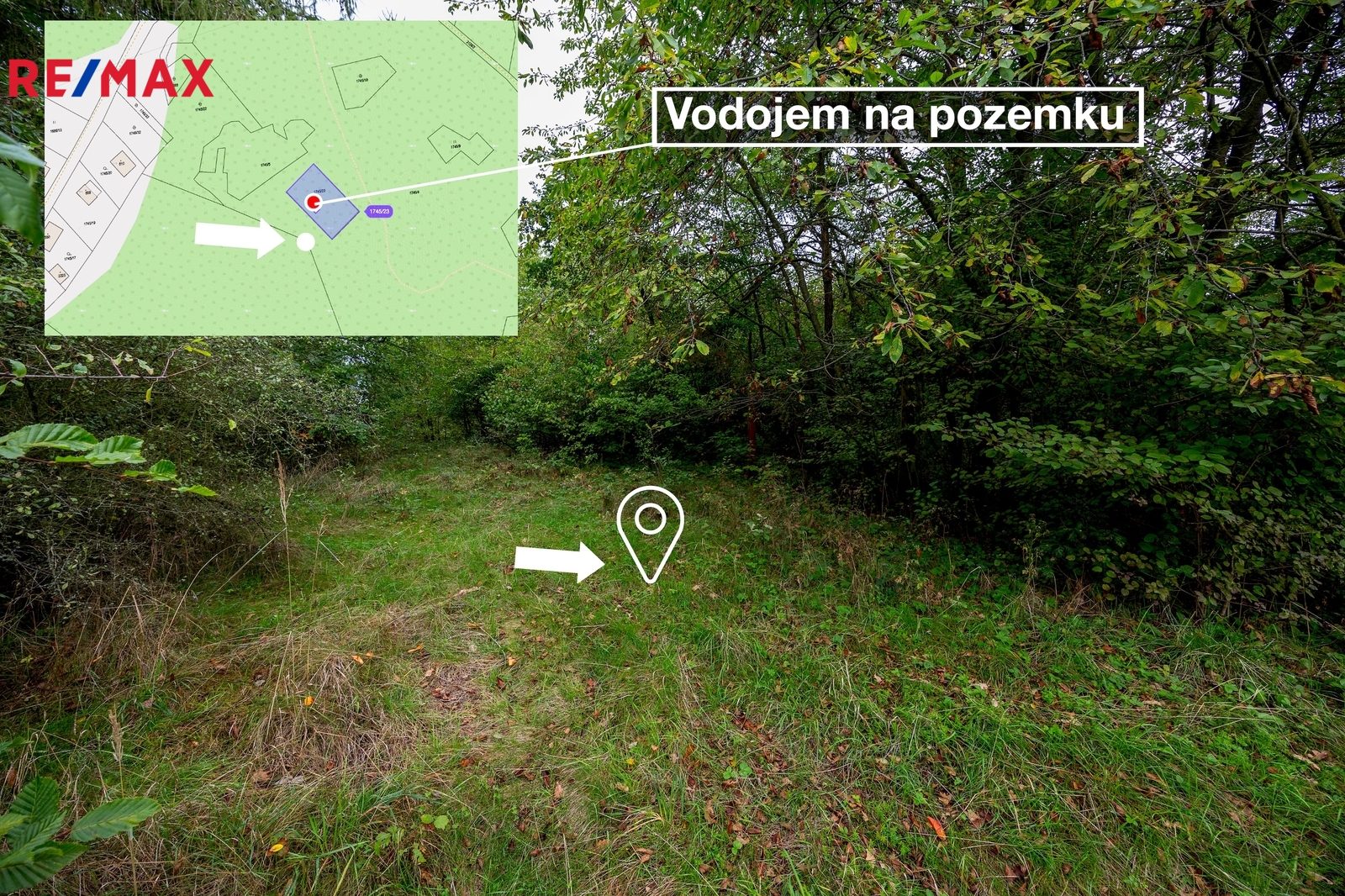 Pozemek dosud sloužil jako zásobárna vody (vodojem) pro nedaleký výrobní areál. Nachází se na kopci uprostřed luk a lesů a kromě zásobníku na vodu není nepojen na žádné inženýrské sítě. Případná elektřina se tak nabízí řešit pouze formou fotovoltaických panelů apod.