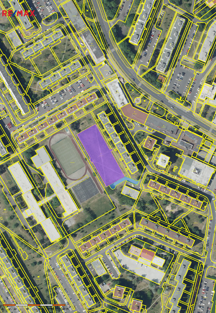Bezpečnost: vjezd přes hlavní bránu na dálkové ovládání (šířka 20 m), boční vstup po schodech