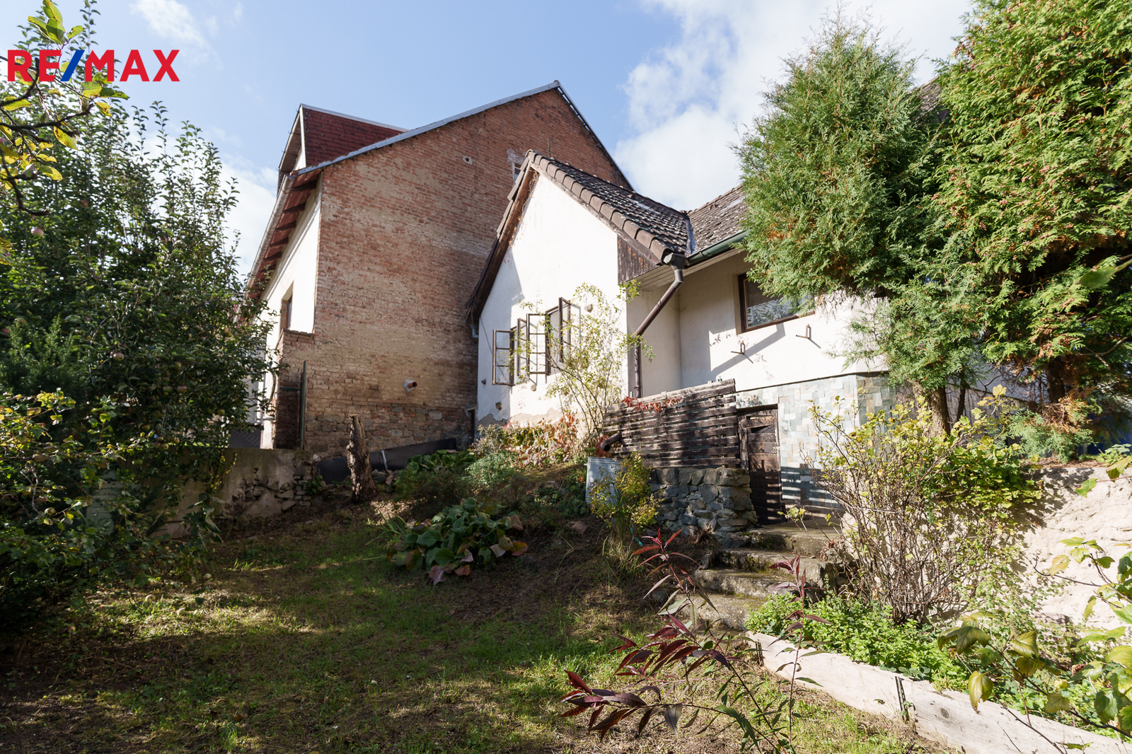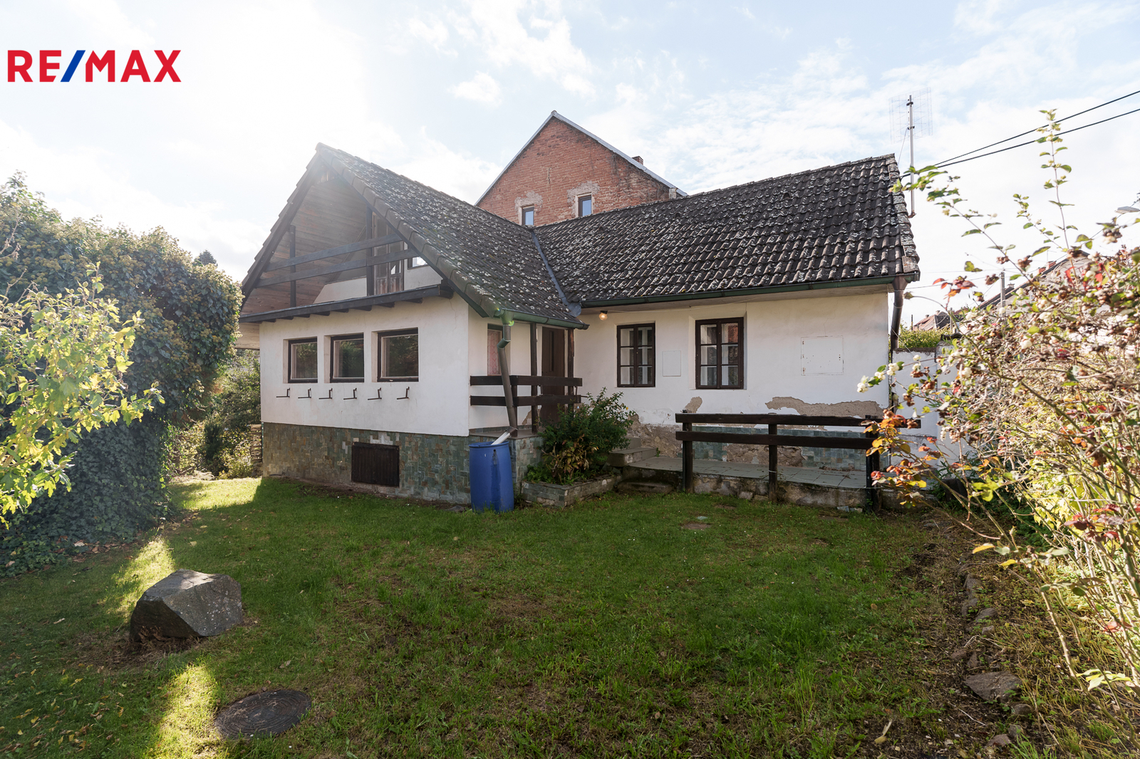 Na zahradě jsou ovocné stromy, malá terasa a venkovní krb. A hlavně klid a pohoda.
