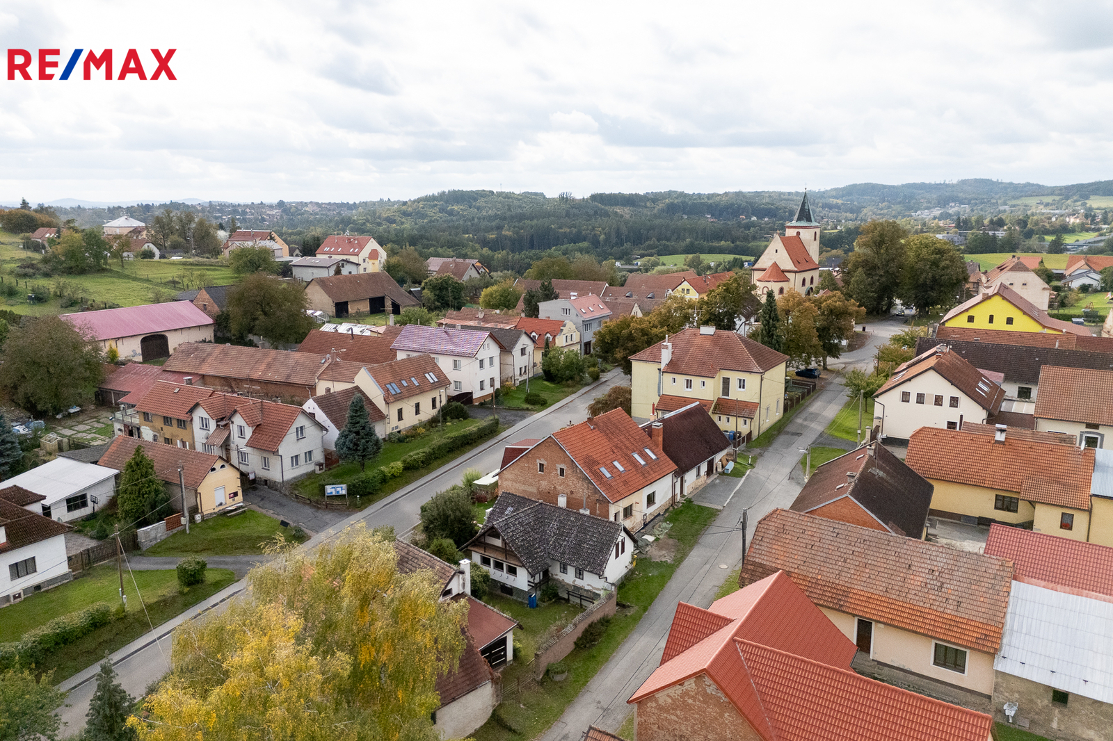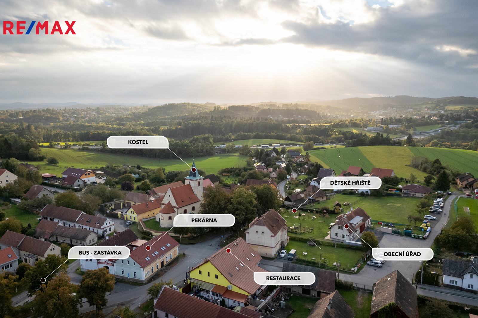 Vše potřebné najdete do 50m od dveří: hospodu, obchod, pekárnu, školku, dětské hřiště, kostel.