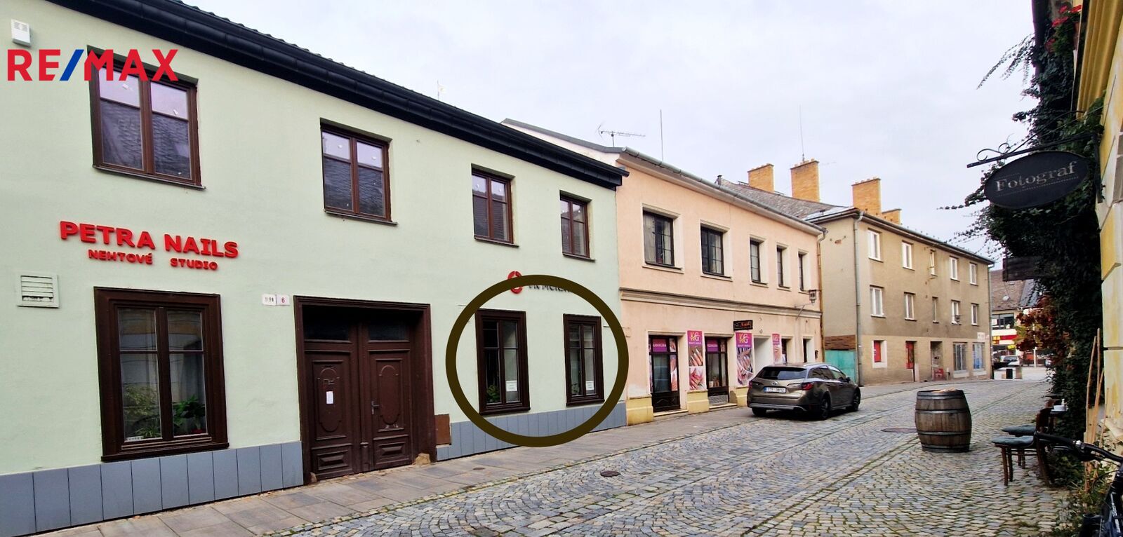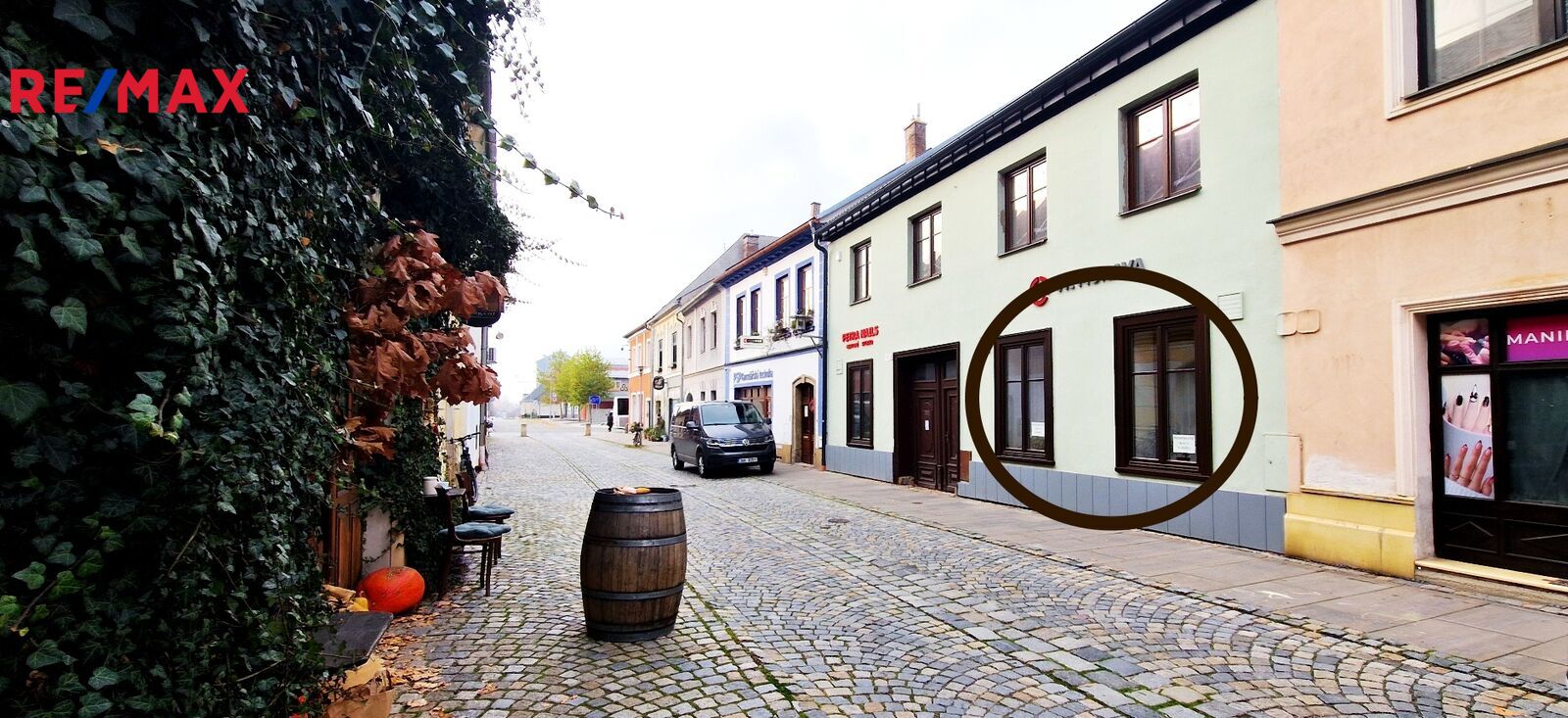 Památková zóna dodává prostoru historickou atmosféru, která může přitáhnout pozornost zákazníků. V okolí je dostatek parkovacích míst.