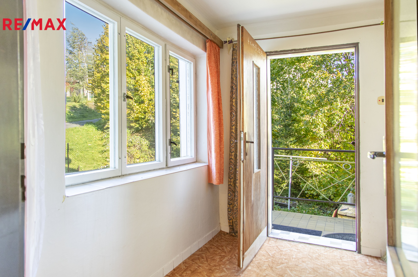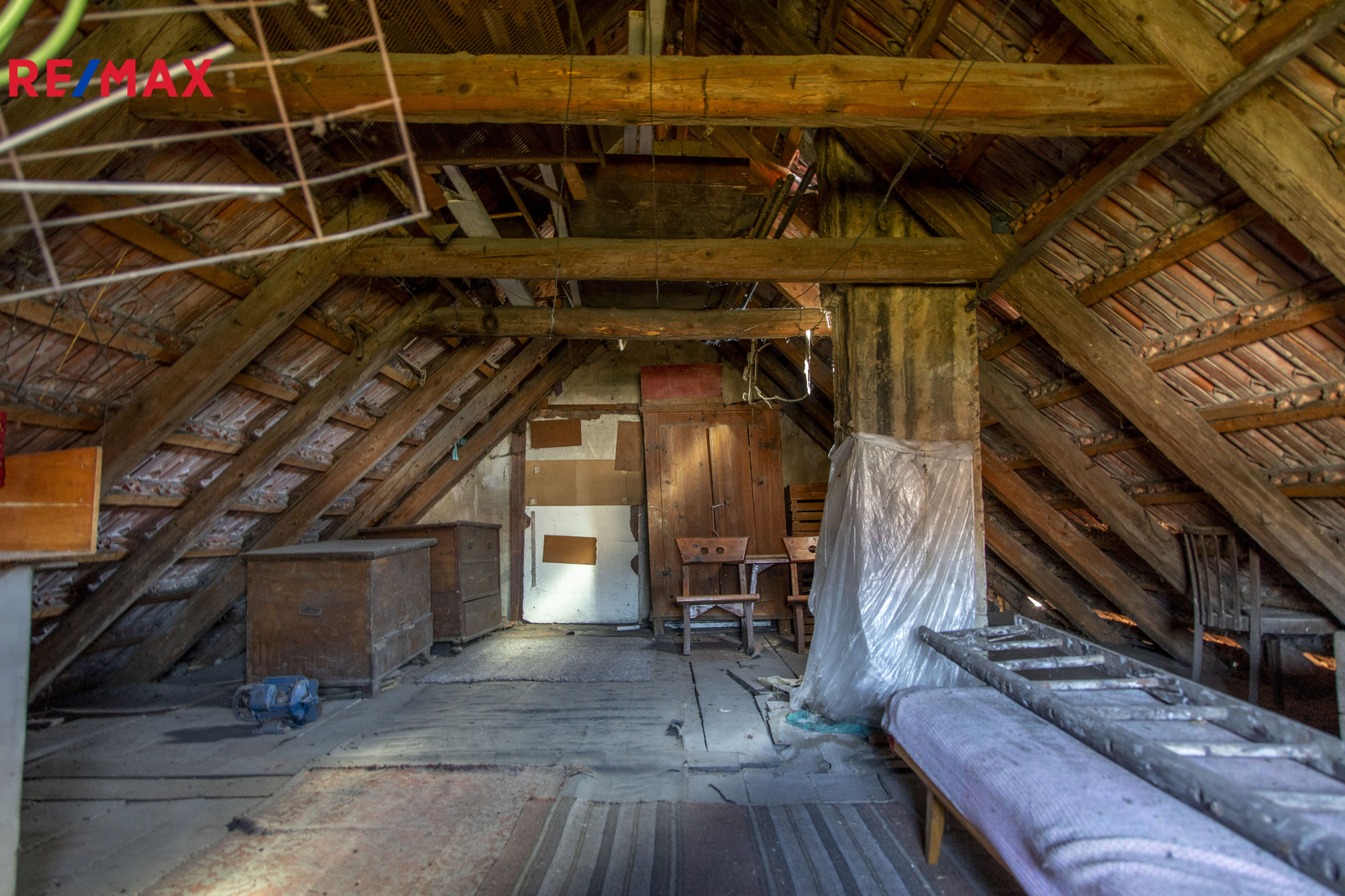 V patře jsou dva pokoje, terasa nad vstupním zádveřím a výstup na půdu, kde je další prostor pro možné vybudování půdní vestavby.
