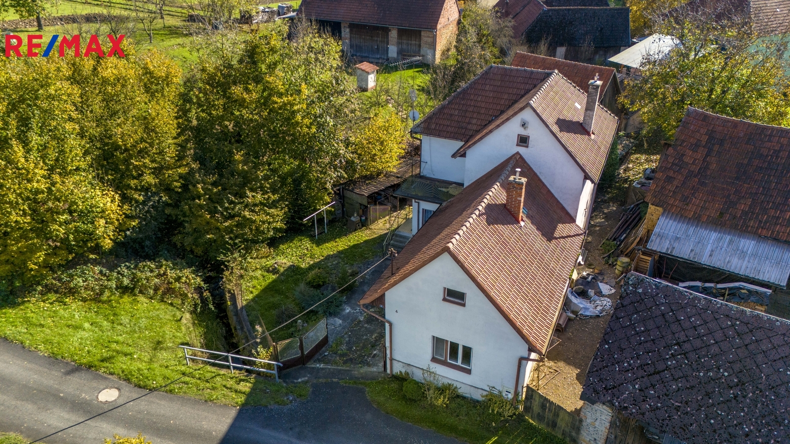 K domu patří sklepní prostor a garáž. Nemovitost má zaveden plyn, elektřinu, kanalizaci a voda je z vlastní studny s možností napojení na vodovodní řad.