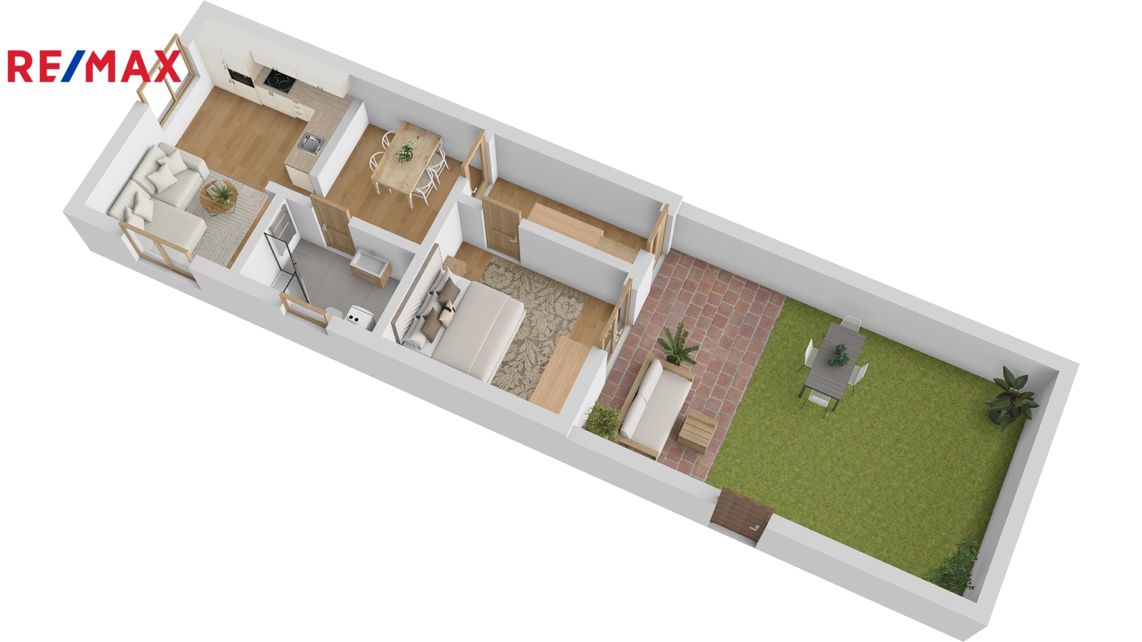 Za domem se nachází menší dvorek, který poskytuje soukromí pro venkovní posezení, grilování nebo relaxaci. Dům je částečně podsklepený a k dispozici je i půda, vhodná jako úložný prostor.
