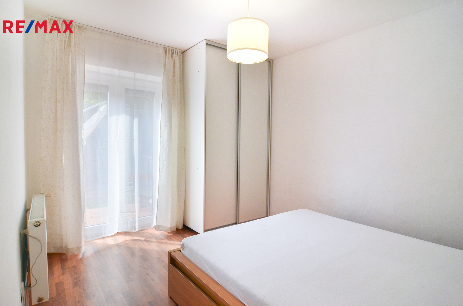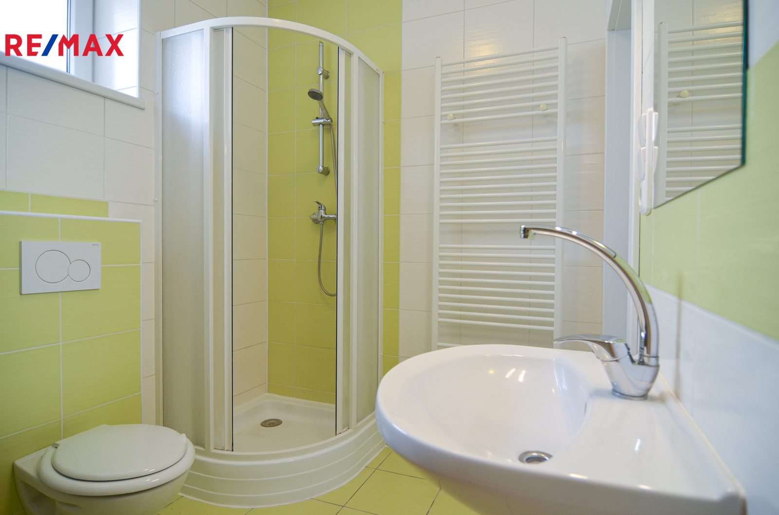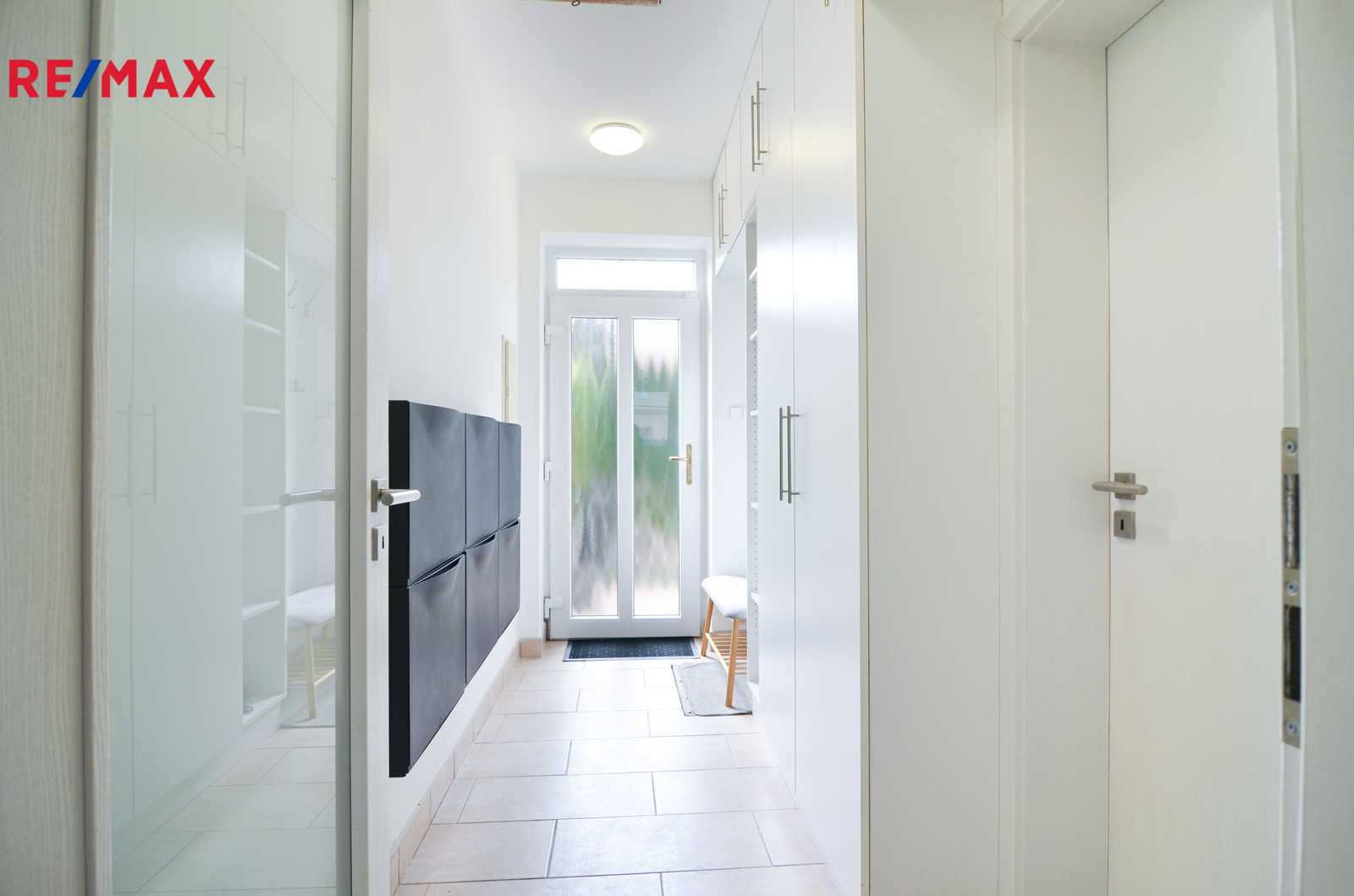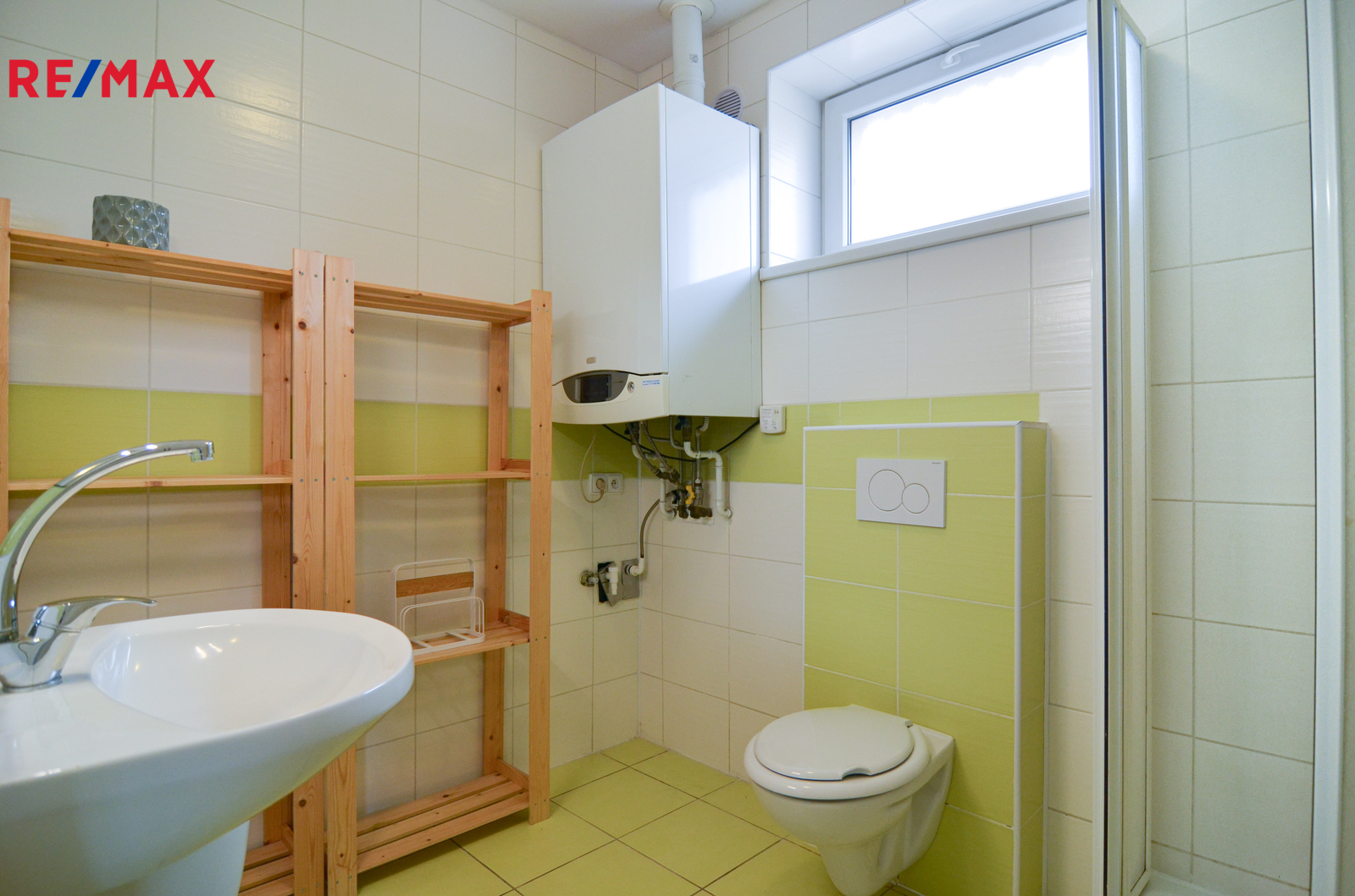 Koupelna je vybavena sprchovým koutem, umyvadlem, toaletou a plynovým kotlem, který zajišťuje vytápění i ohřev vody (revize proběhla v září 2025). Ložnice je orientovaná do klidné části domu a nabízí přímý vstup na dvorek. Vstupní chodba je doplněna praktickými úložnými skříněmi.