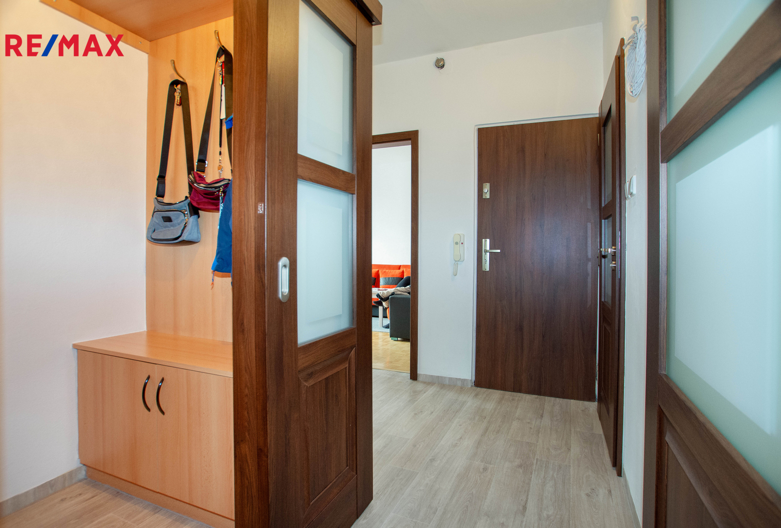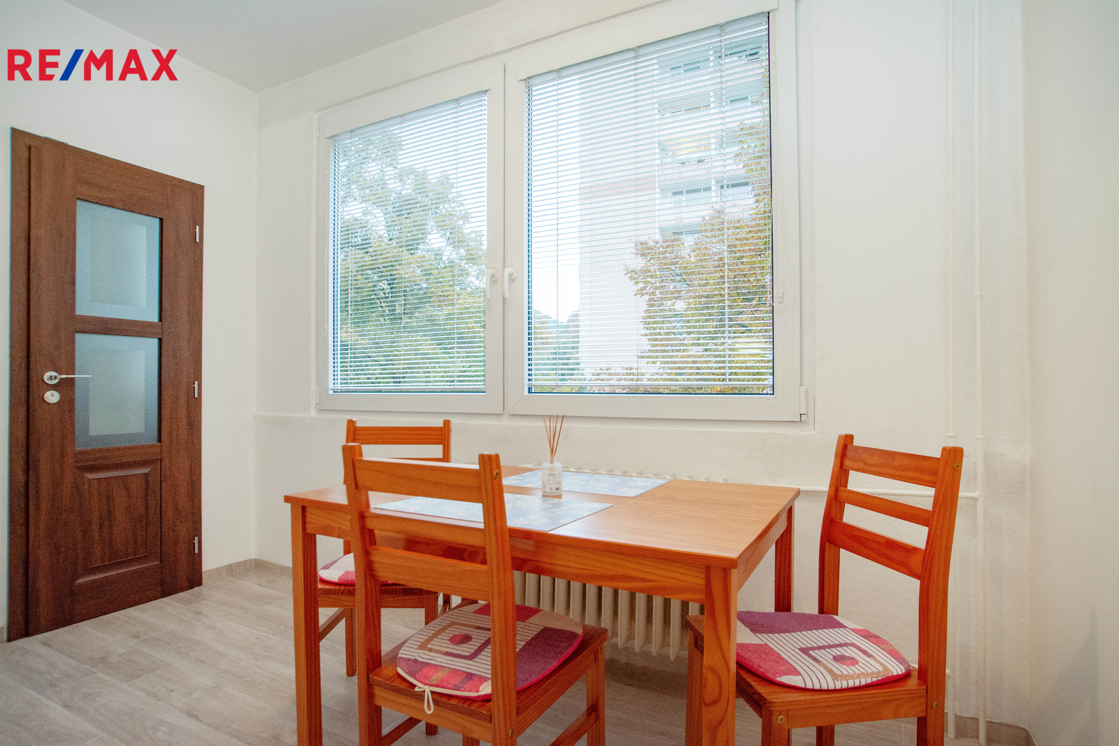 Velikou výhodou bytu jsou dva samostatné pokoje, z nichž jeden má balkon. Kuchyň s jídelním koutem, která je vybavena kuchyňskou linkou a kombinovaným sporákem s rychlovarnou deskou a také s komorou, která je ideálním úložným prostorem.