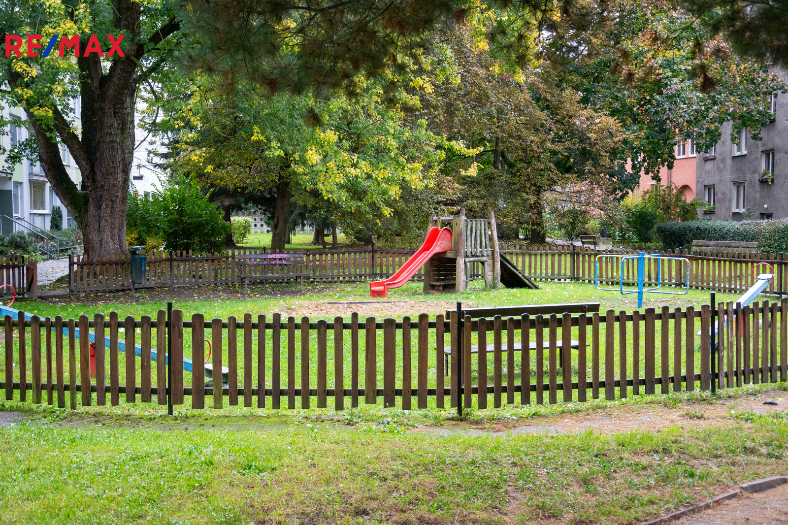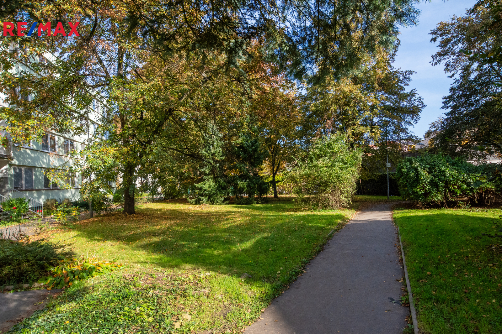 Dům je v klidné části s výhledem do parku. Ve vchodě je i kočárkárna/kolárna.