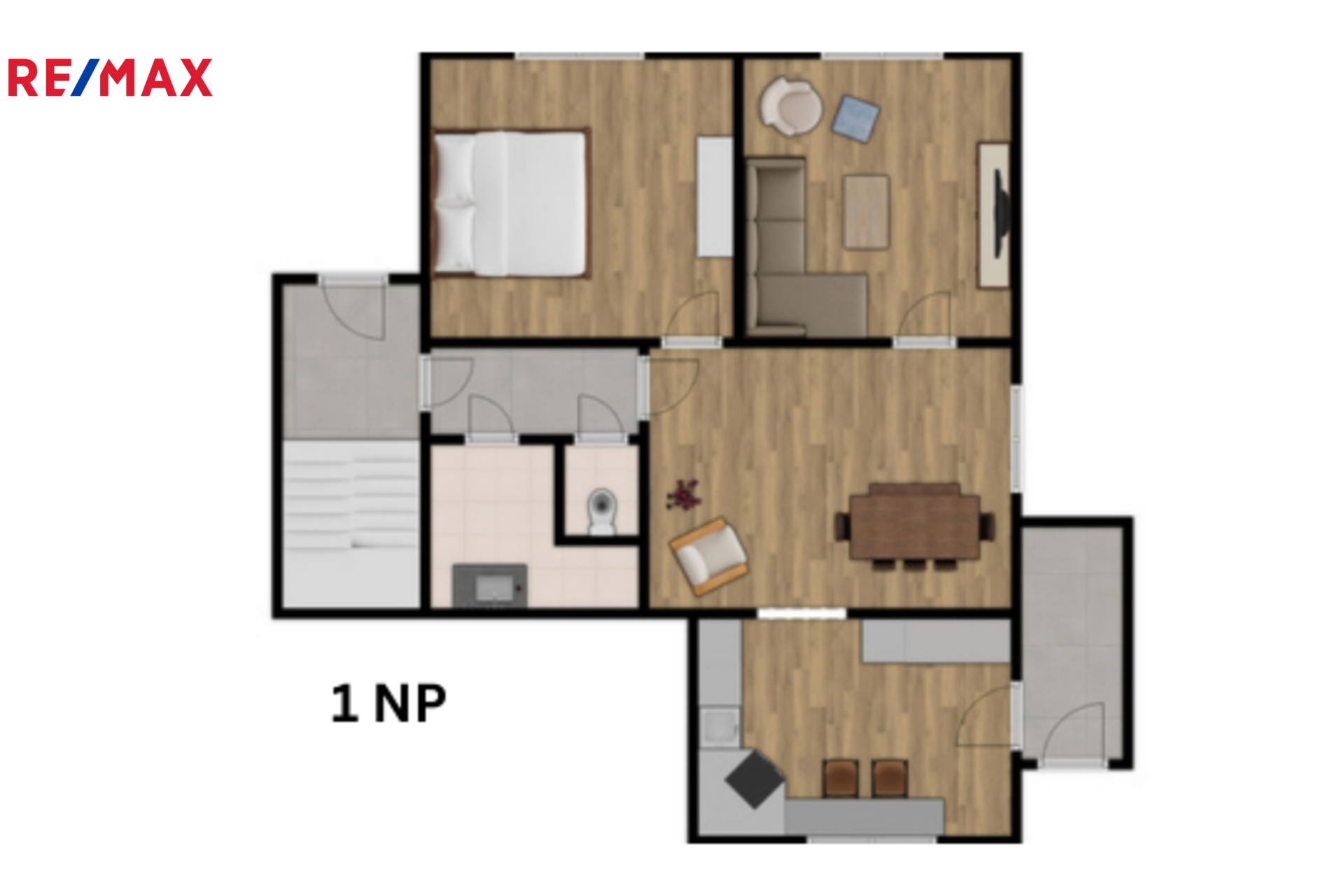 1 NP: byt 3+kk + garáž, kompletní rekonstrukce 2021