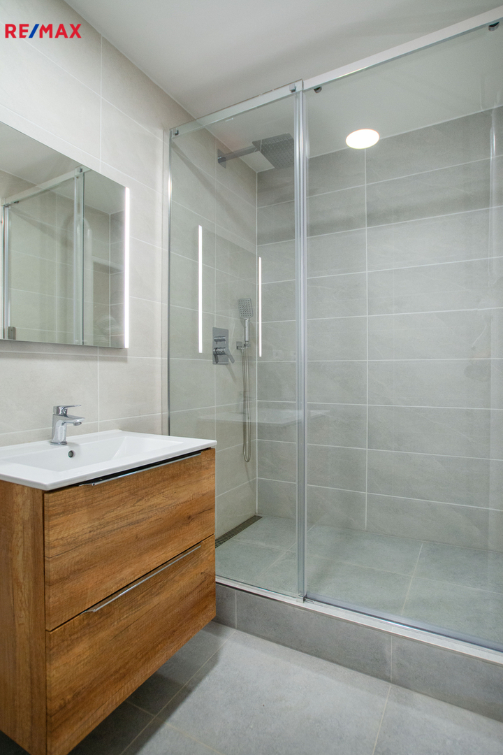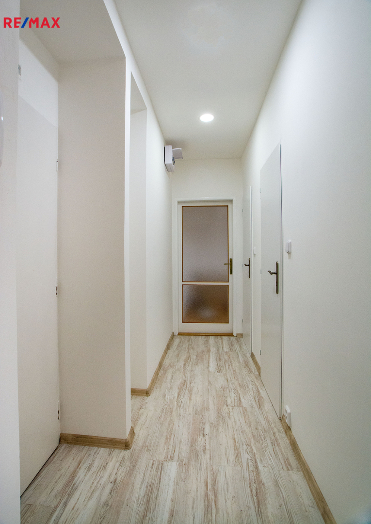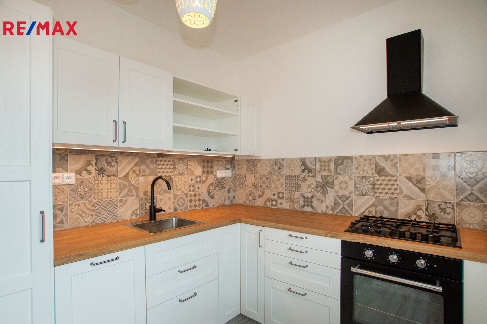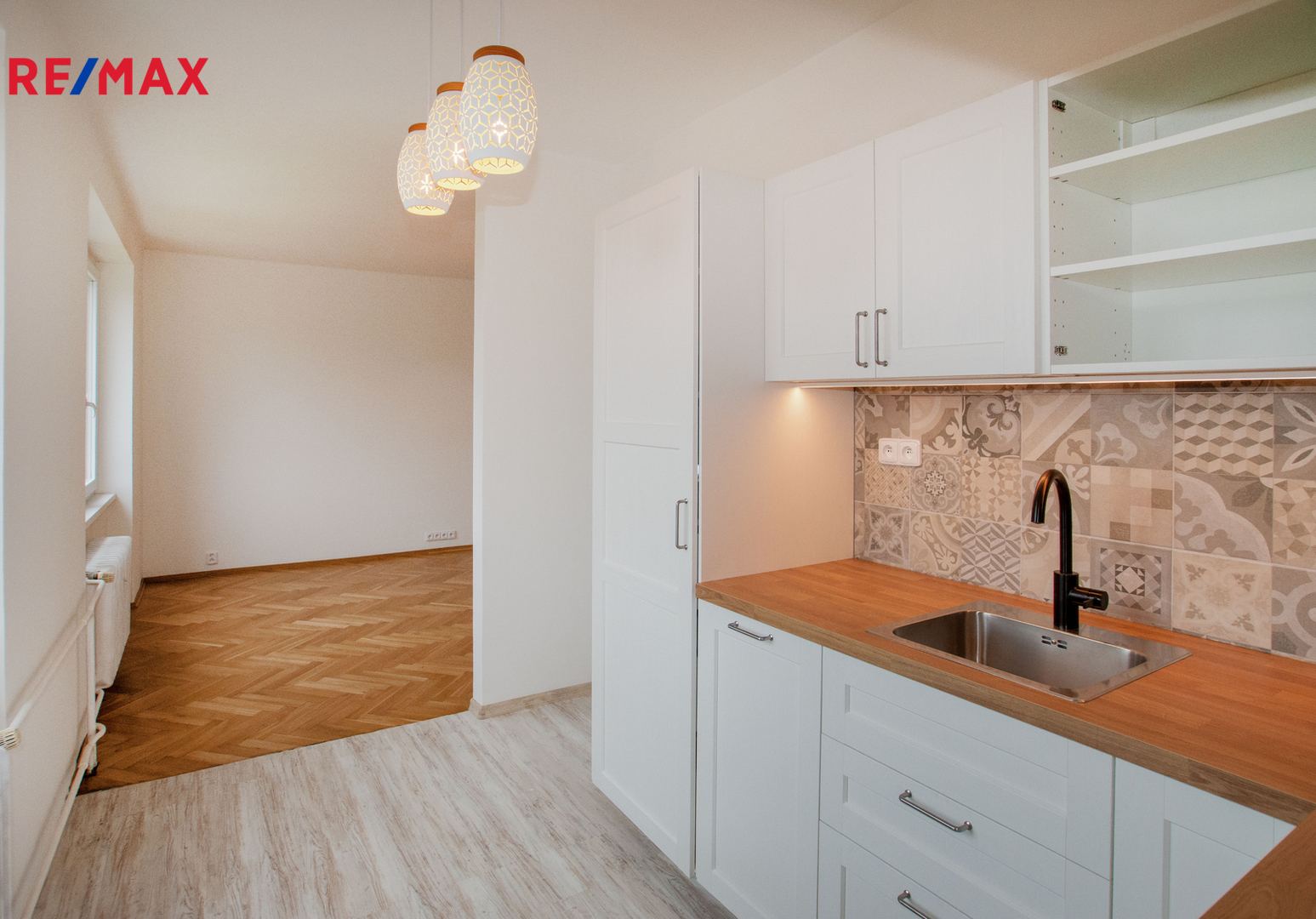 Byt 2+1 prošel kompletní rekonstrukcí. Nové jsou dveře, výmalba, ale také celá kuchyňská linka včetně spotřebičů. Dále je nová také koupelna s umyvadlem, nadstandardně veliký sprchový kout a samostatné WC. Dřevěné parkety v místnostech jsou původní, zrenovované.
