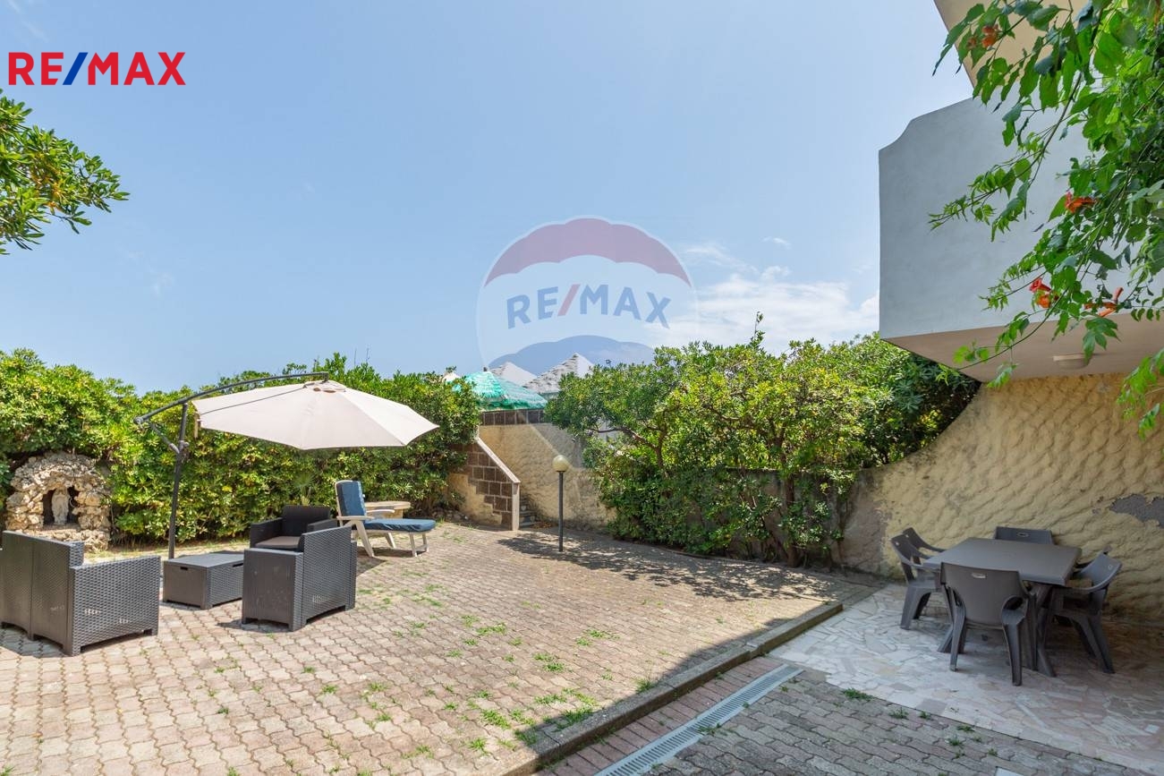 Za vstupní bránou vás přivítá prostorné dlážděné nádvoří s venkovním posezením a grilem, odkud vede soukromý chodník přímo na písečnou pláž. V přízemí najdete světlou společenskou místnost, kuchyň a koupelnu. Vnější schodiště vás zavede do hlavního apartmánu, kde každý pokoj má vlastní vstup na balkon s okouzlujícím výhledem na moře. Interiér je příjemně prosvětlený přirozeným světlem. Dispozici tvoří obývací pokoj s kuchyňským koutem, tři ložnice a koupelna. Nemovitost prošla částečnou rekonstrukcí – má nová okna a fasádu.