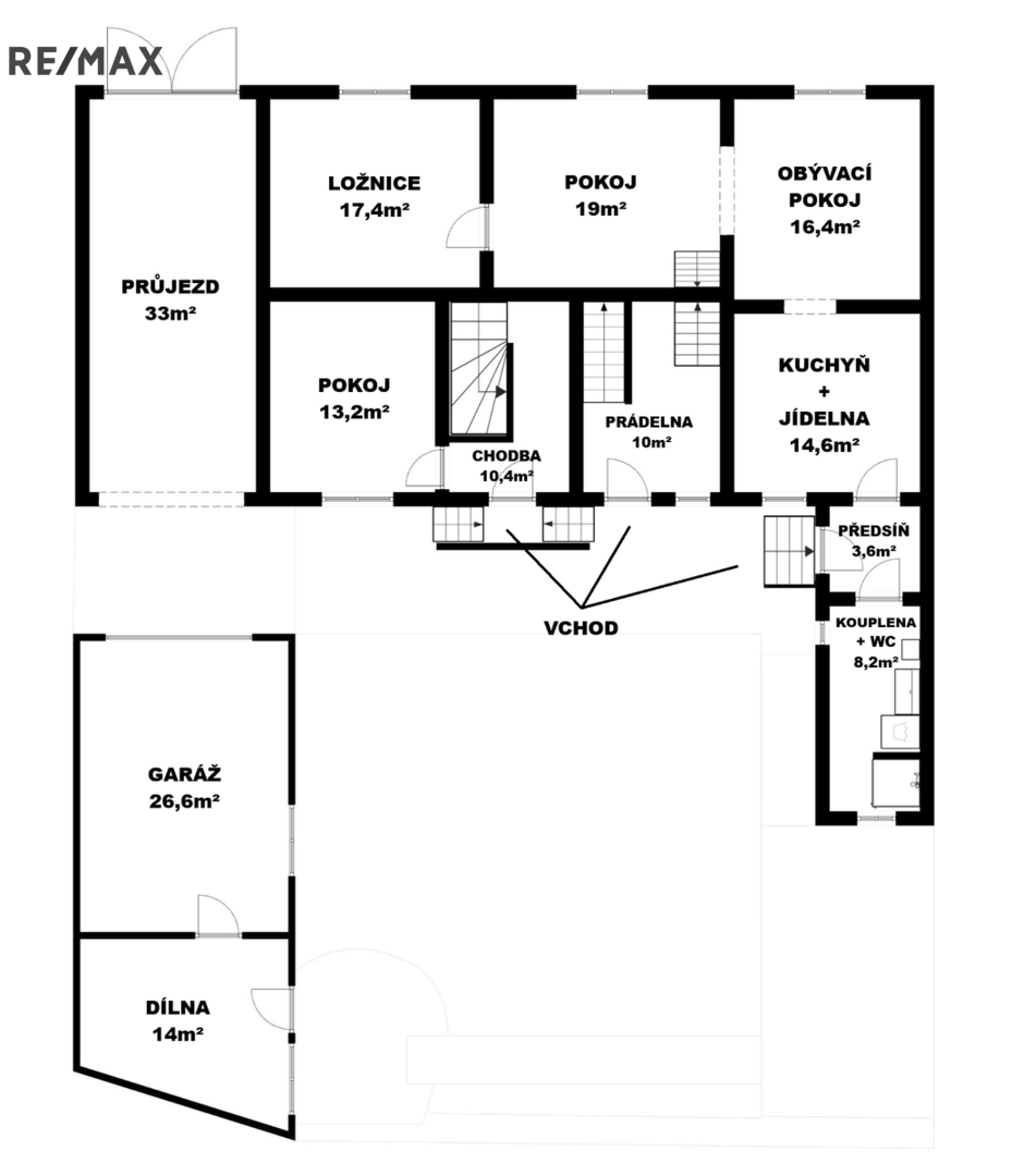 Z průjezdu je pak vstup na obrovskou půdu, která je nad celým půdorysem domu, kdy je zde potenciál pro další rozšiřování obytných ploch.