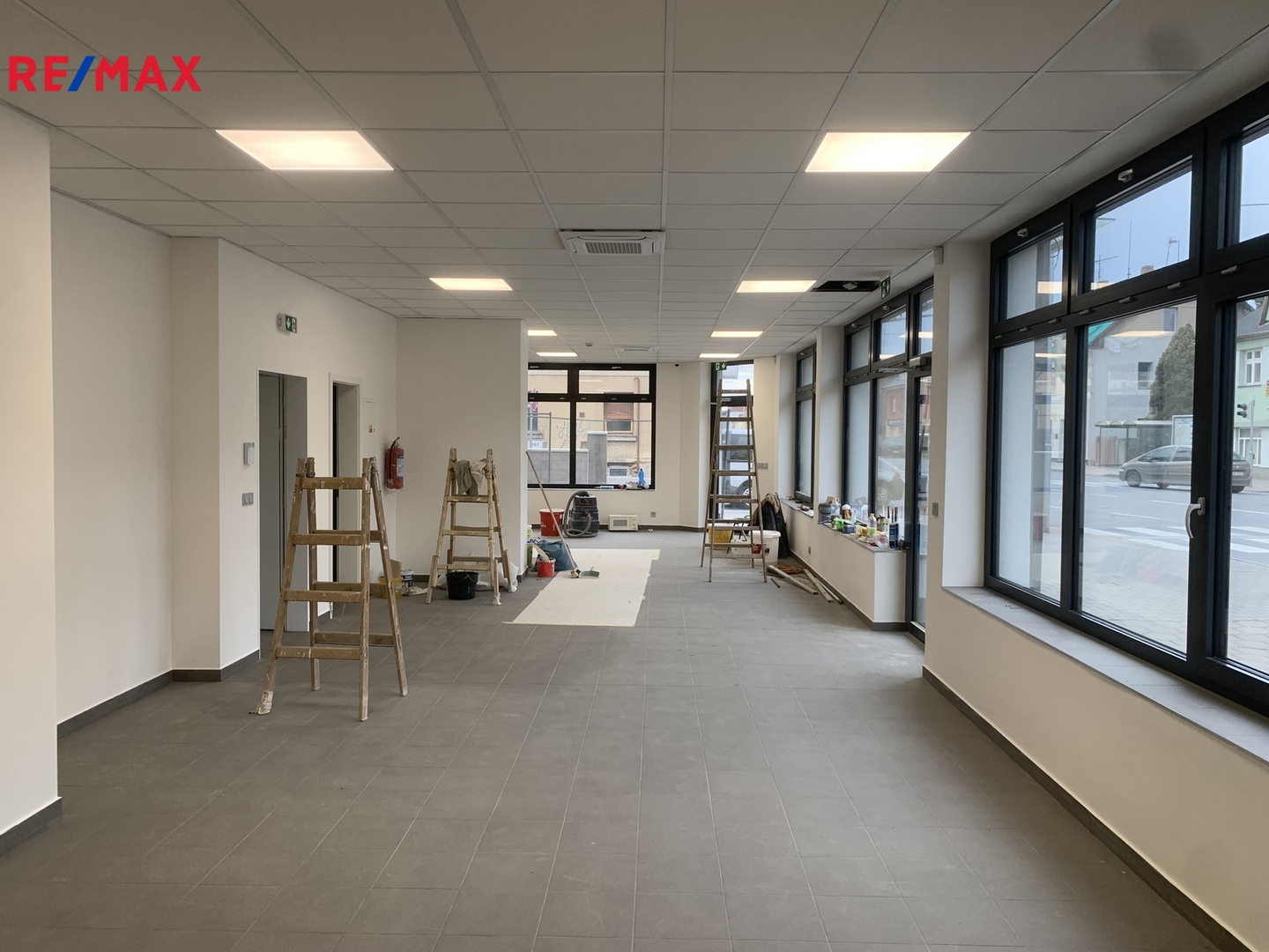 Tento prostor o velikosti 147 m² je ideální pro budoucí showroom nebo obchodní místo a může být přizpůsoben vašim potřebám. Součástí je zázemí komerční plochy/kancelář o velikosti 4,5 m2, úklidová místnost + sprcha 4,3 m2 a WC 1,9 m2.