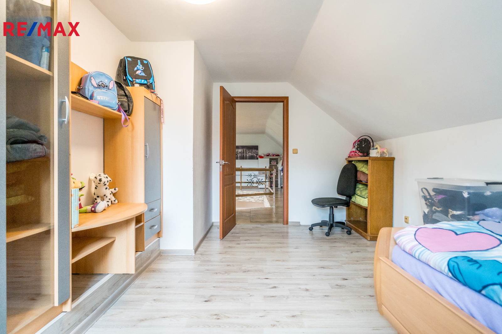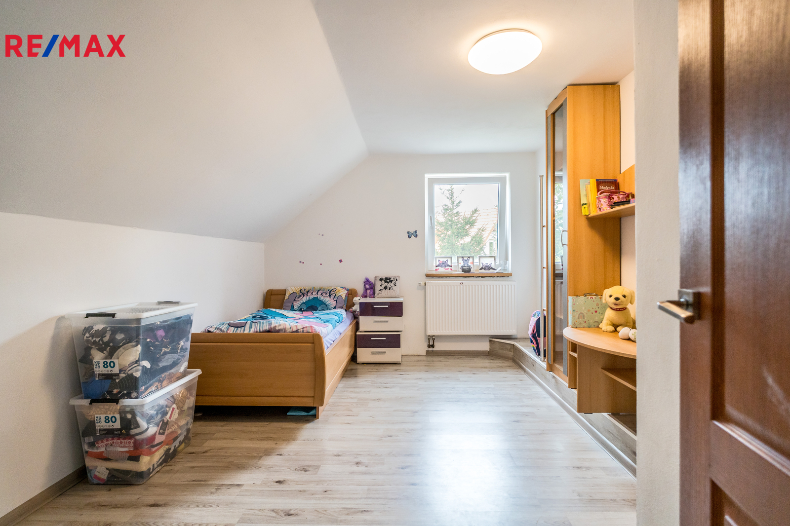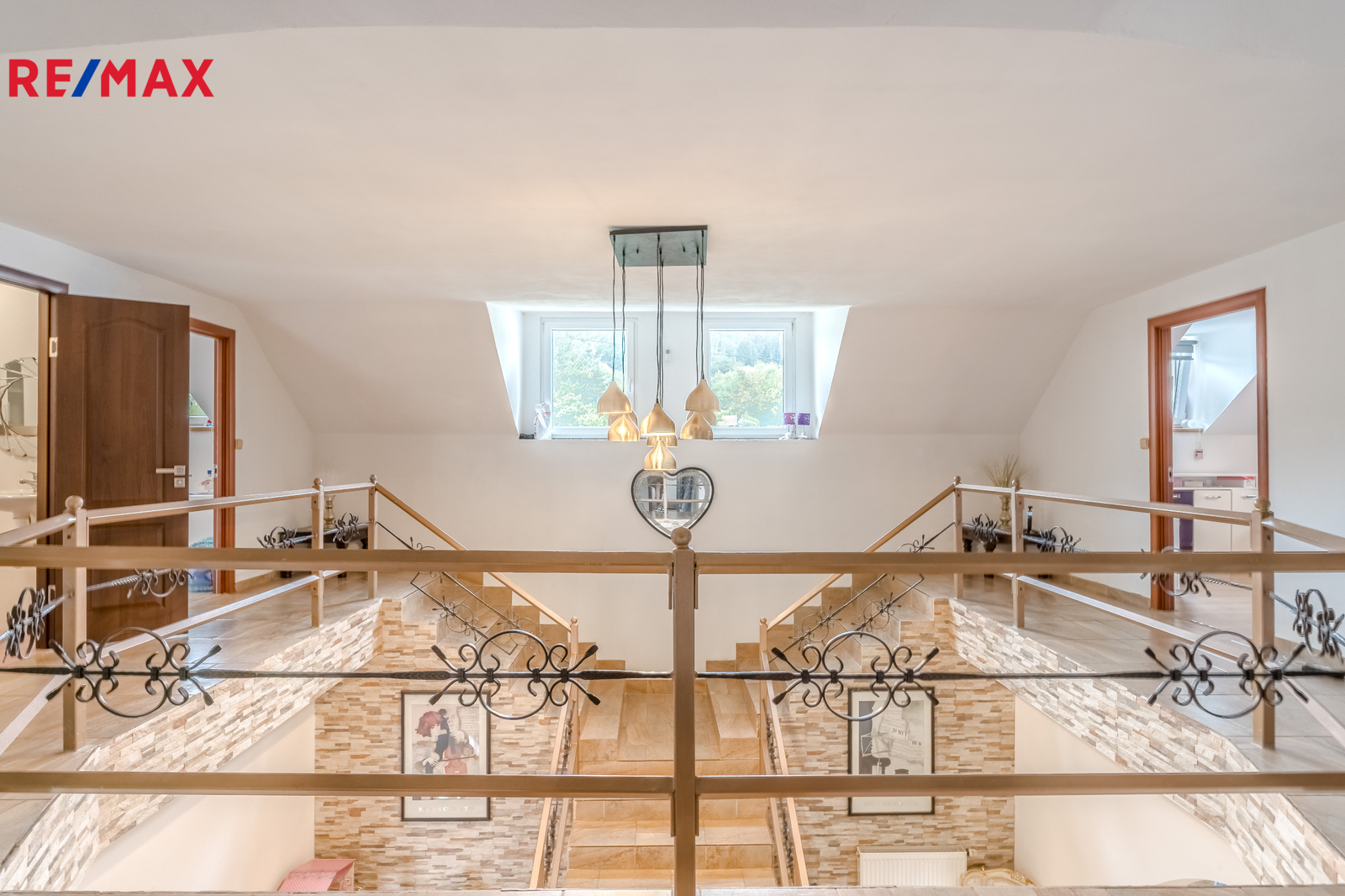 První patro domu nabízí pět pokojů, komfortní chodbu, koupelnu s vanou a toaletou a navíc ještě jednu samostatnou toaletu.