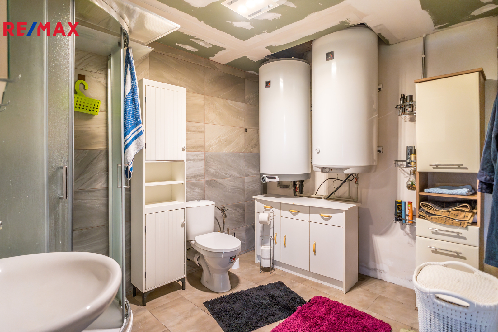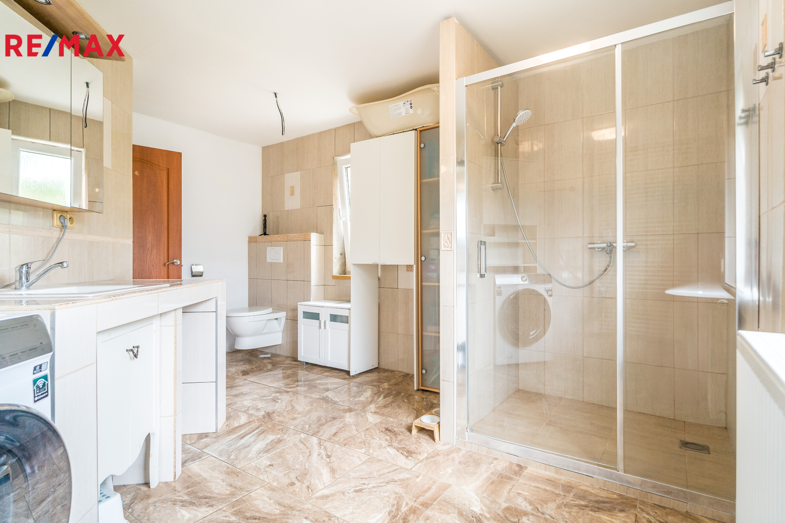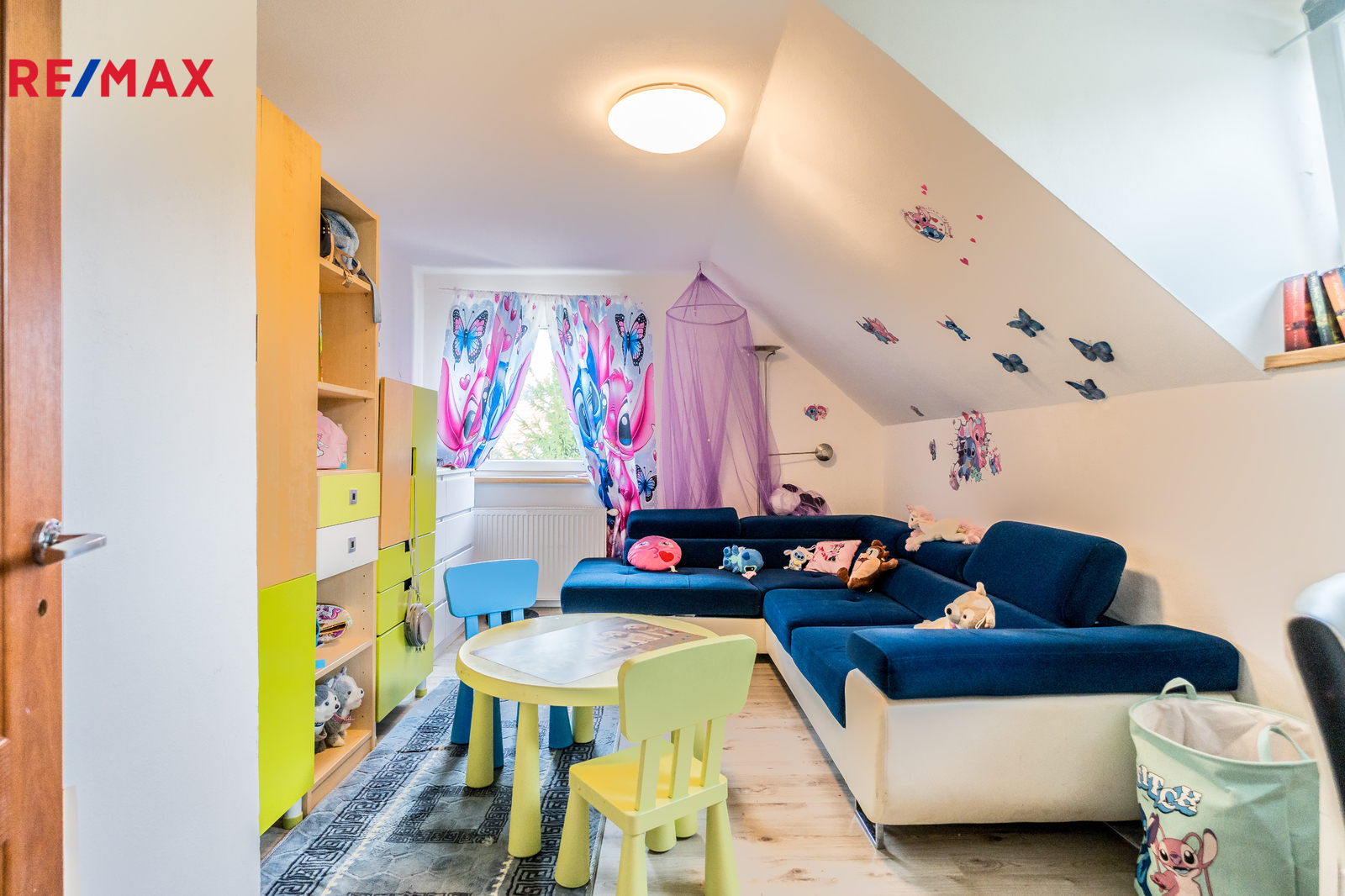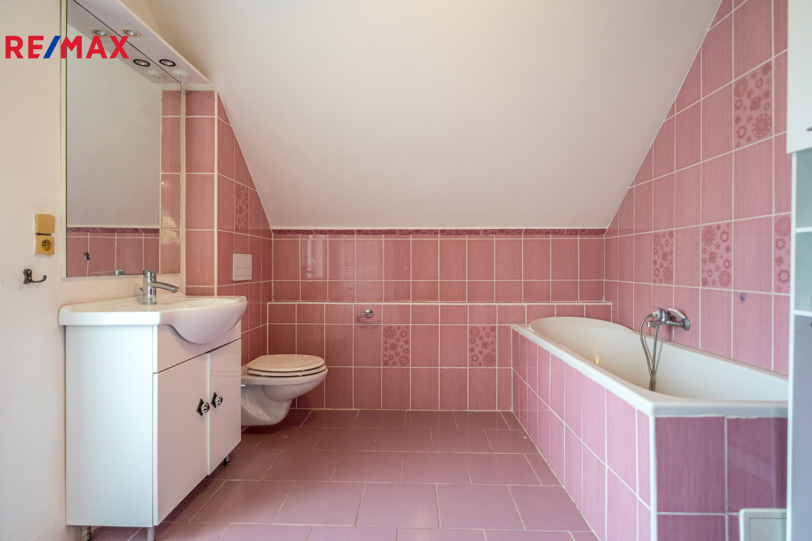 První patro domu nabízí pět pokojů, komfortní chodbu, koupelnu s vanou a toaletou a navíc ještě jednu samostatnou toaletu.