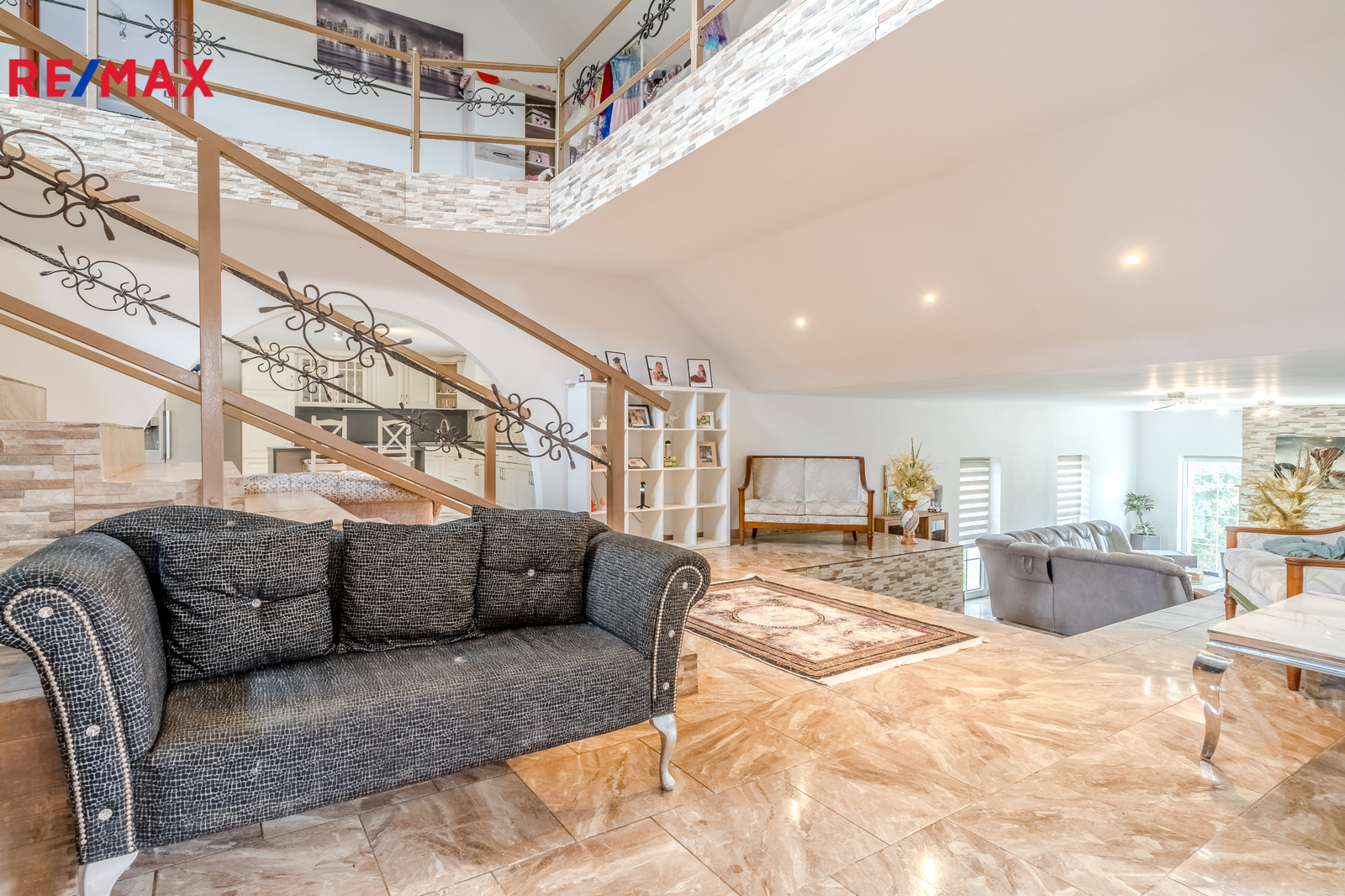 Samostatně stojící třípodlažní rodinný dům je dispozičně řešený jako 8+2 s užitnou plochou 499 m2.
