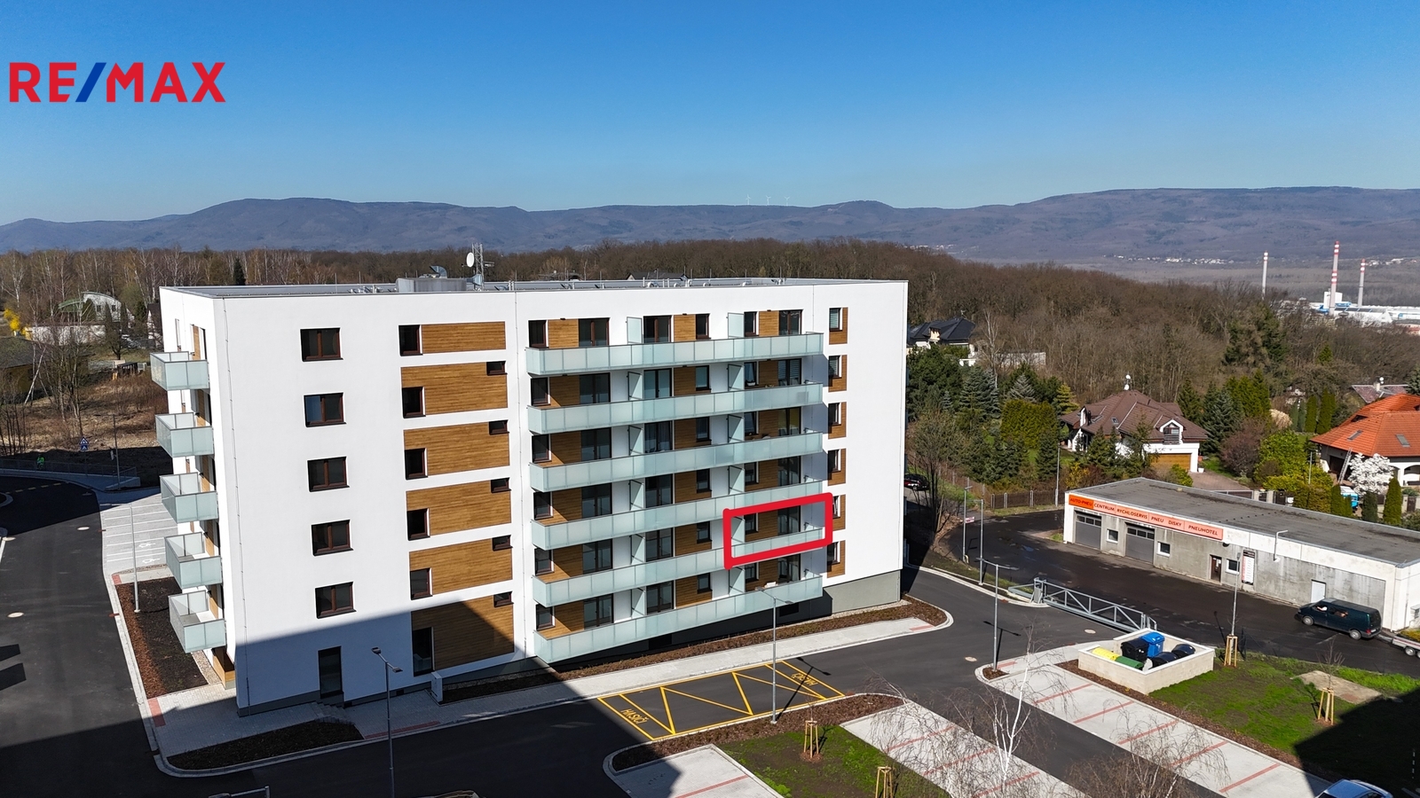 Nabízíme k dlouhodobému pronájmu krásný, prostorný a zcela NOVÝ byt v osobním vlastnictví o dispozici 2kk, s výměrou celkem 57.5 m2, který je umístěn ve 2.NP (výtah) patře nově postaveného domu v areálu REZIDENCE NOVOVESKÁ, Teplice, ul. Novoveská 3390, okr. Teplice. Samotný byt, z něhož jsou nádherné výhledy do širokého okolí, je o velikosti 47 m2 + prostorný balkon 10,5 m2 (celkem 57,5 m2), a je určen pro náročnou klientelu. K bytu náleží garážové parkovací místo s přípravou na vlastní ele. nabíjecí stanicí ( + 2.000,-Kč/měsíc k nájemnému, které je podmínkou kompletního pronájmu bytu). Dále možnost využít za měsíční pronájem 1.000,-Kč venkovní parkovací stání (toto není podmínkou k nájmu bytu).