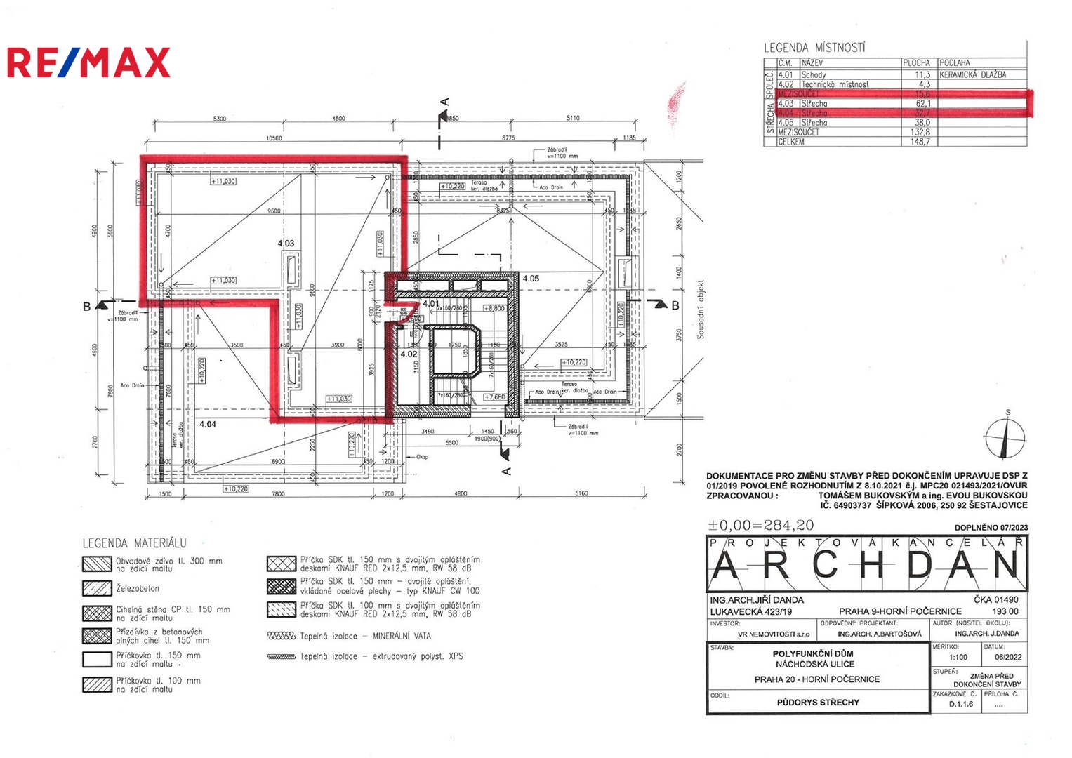 Ve fotografiích naleznete půdorys bytu a střechy s terasou.