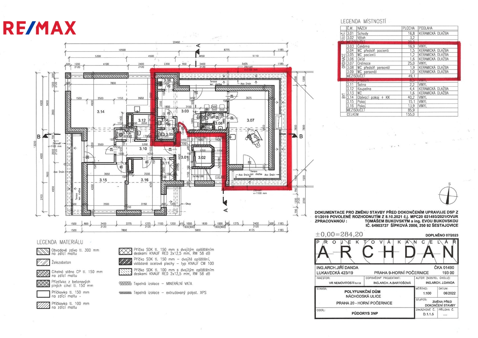 K bytu dále možnost pronájmu některé z ordinací (ve fotografiích půdorys ordinací)