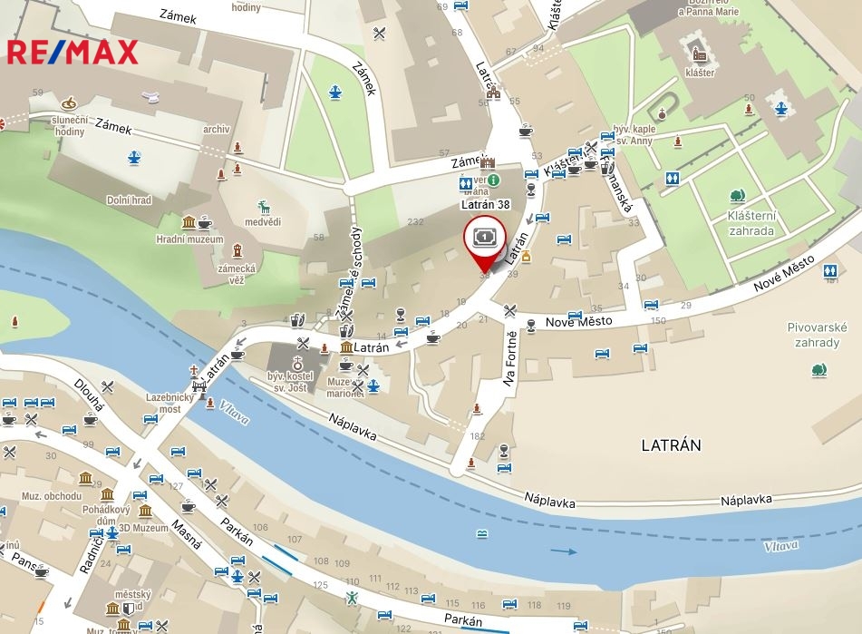 Nabízíme k pronájmu atraktivní obchodní prostor o velikosti 28 m² v historické části Českého Krumlova, který se nachází v přízemí budovy na adrese Latrán 38 v rušné a vyhledávané lokalitě s vysokou pěší frekvencí v těsné blízkosti zámku. V současné době je zde provozována směnárna, prostor je však a to i s ohledem na jeho lukrativní polohu vhodný pro širokou škálu podnikatelských činností jako například obchod, služby, kancelář, menší provozovna.
