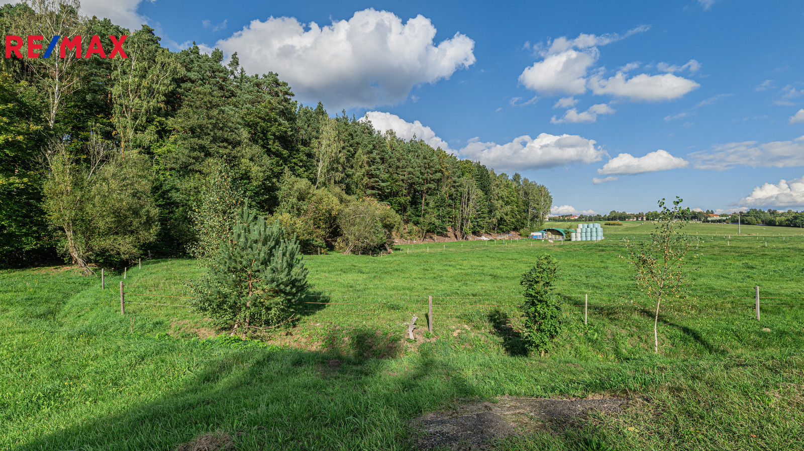 Okolí pozemku je tvořeno nádhernou přírodou s lesy a loukami, které poskytují dostatek klidu a soukromí. Přesto se v obci nachází základní občanská vybavenost – obchody, restaurace, škola či školka. Díky tomu je toto místo ideální kombinací moderního bydlení a přírody.