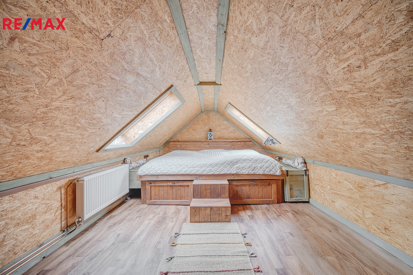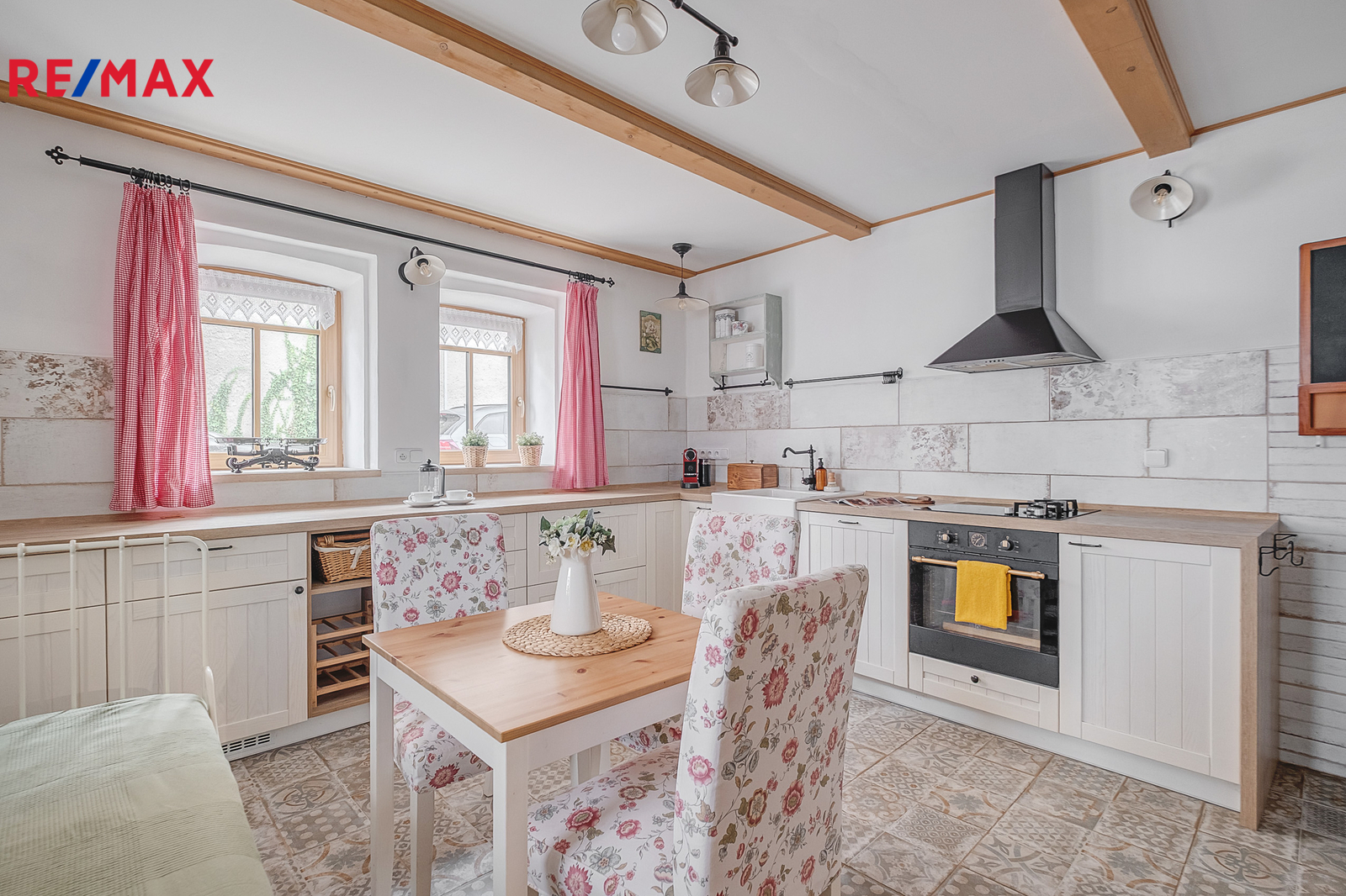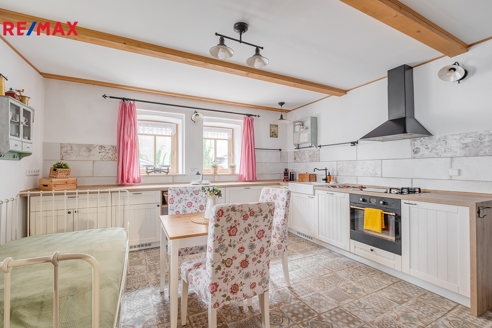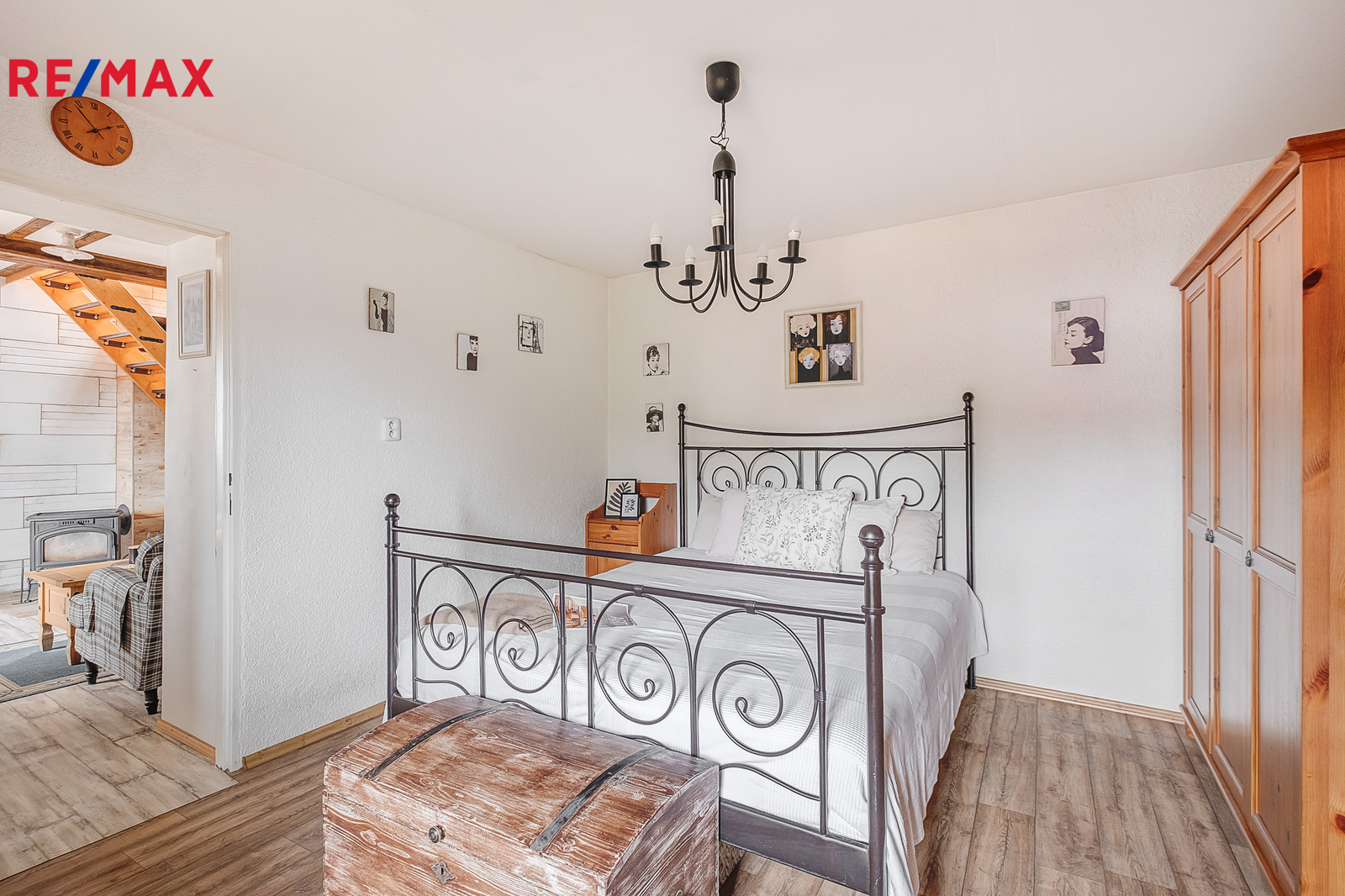 Jedná se o tradiční patrový dům s částečným podsklepením, který se nachází ve vesnici s klidnou a rodinnou atmosférou. V přízemí domu je prostorná kuchyň, koupelna se sprchovým koutem a toaletou, ložnice a obývací pokoj, ve kterém jsou krbová kamna. Vedou z něj také schody do podkroví. V prvním patře jsou dva podkrovní samostatné pokoje a samostatná toaleta. Velkým bonusem této nemovitosti je krásně řešená krytá pergola, která slouží jako letní kuchyně a společenský prostor. Součástí tohoto prostoru je také posezení s jídelním stolem a postel, která lze využít pro hosty nebo jako relaxační zóna. Z pergoly se vychází na dřevěnou terasu s otevřeným výhledem do okolní přírody. Toto místo přímo vybízí k ranní kávě a večernímu posezení. Pergola je od terasy oddělena stahovacími žaluziemi, tudíž ji lze celou uzavřít a vytápět. Pod terasou se nachází vybavená dílna. Na pozemku je k dispozici nové technické zázemí v podobě krytého prostoru na dřevo, zahradní vybavení a kola. V horkých letních dnech se můžete osvěžit u venkovní sprchy, která je v zákoutí zahrady, tudíž v naprostém soukromí.