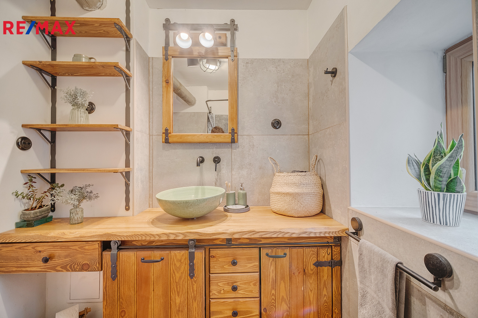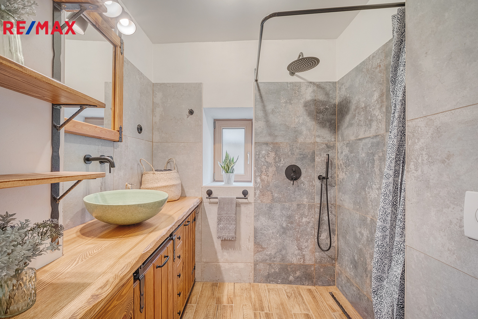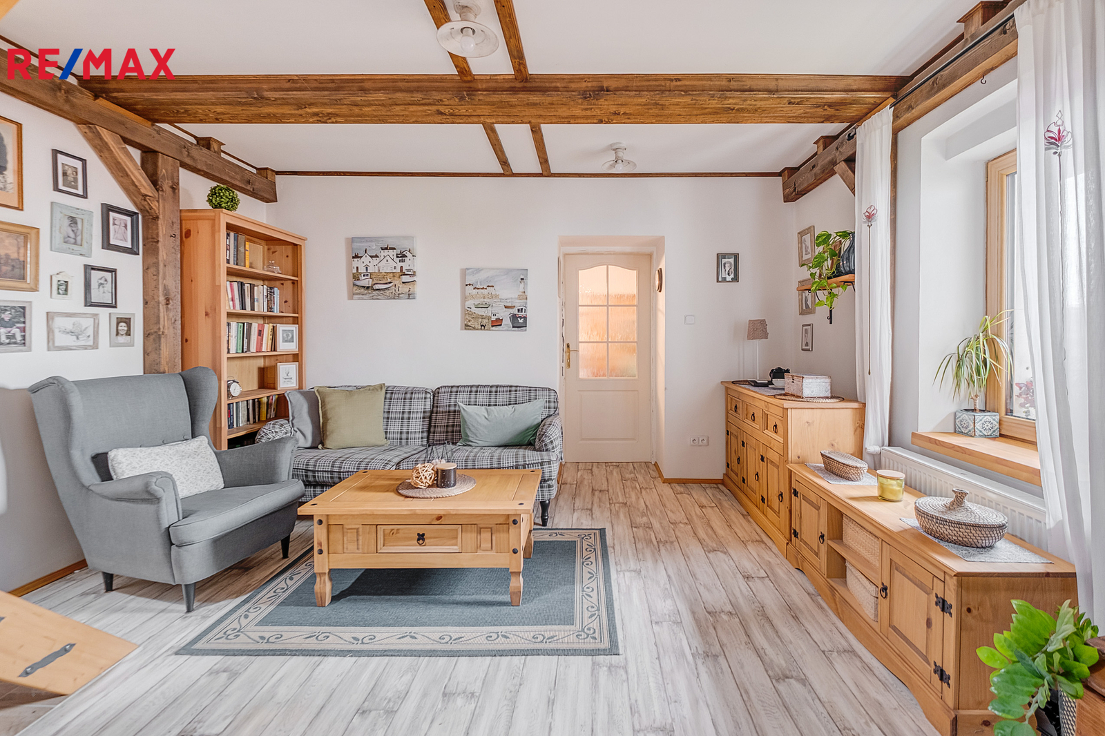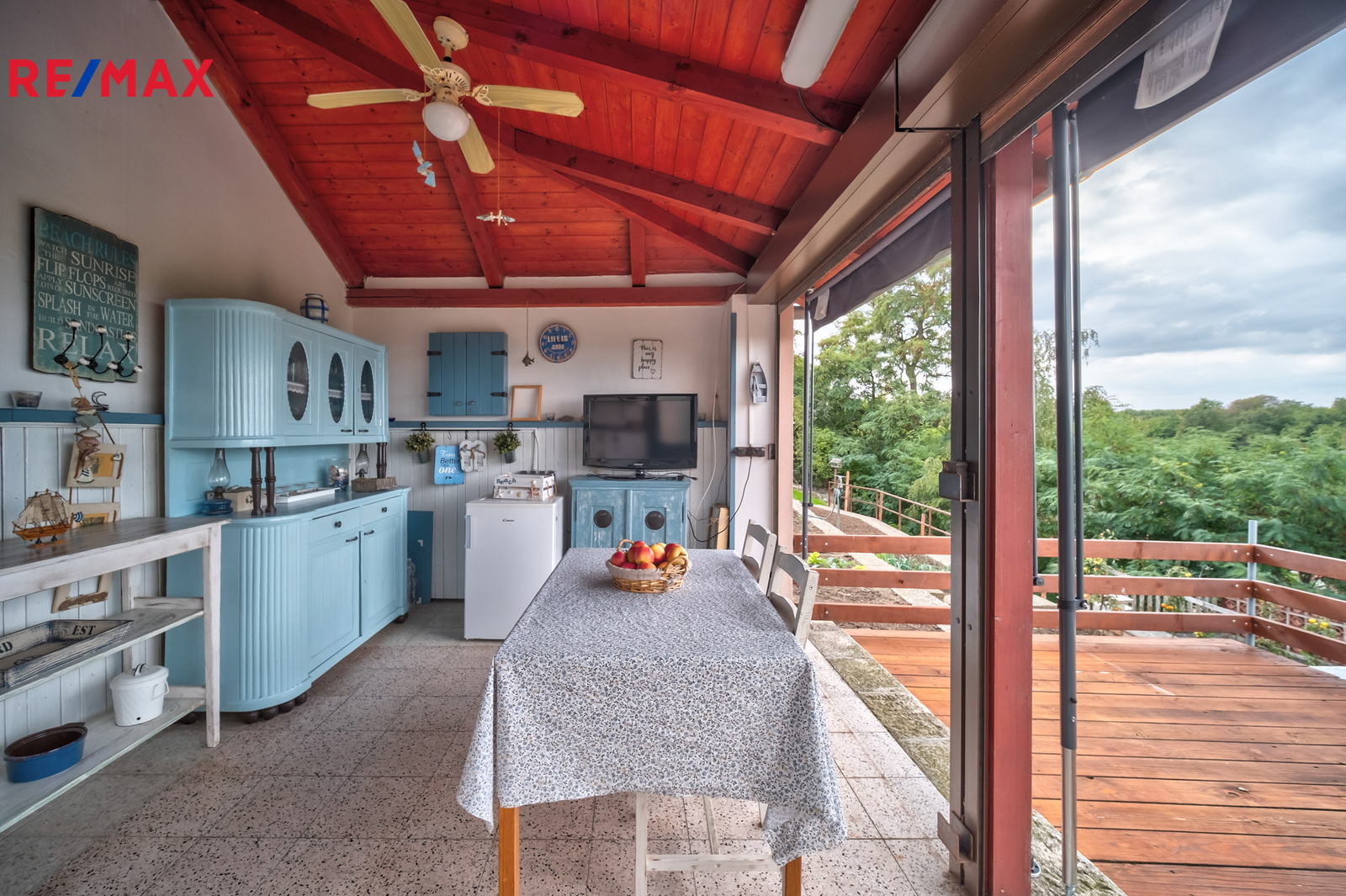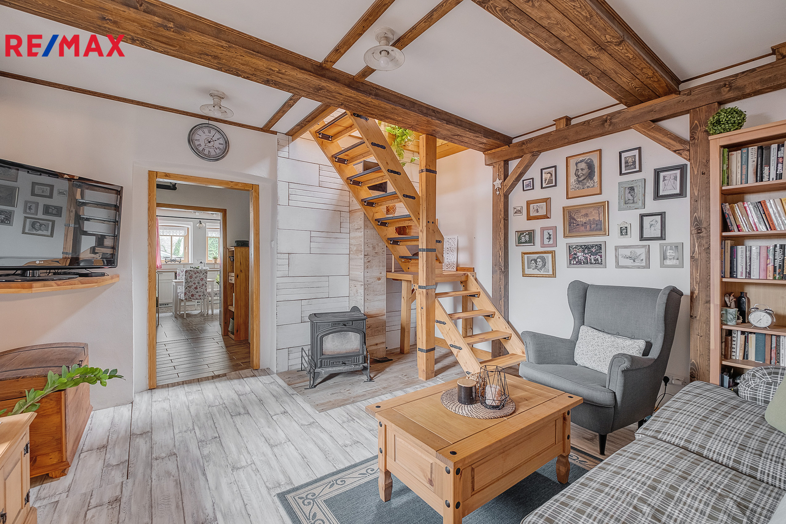 Jedná se o tradiční patrový dům s částečným podsklepením, který se nachází ve vesnici s klidnou a rodinnou atmosférou. V přízemí domu je prostorná kuchyň, koupelna se sprchovým koutem a toaletou, ložnice a obývací pokoj, ve kterém jsou krbová kamna. Vedou z něj také schody do podkroví. V prvním patře jsou dva podkrovní samostatné pokoje a samostatná toaleta. Velkým bonusem této nemovitosti je krásně řešená krytá pergola, která slouží jako letní kuchyně a společenský prostor. Součástí tohoto prostoru je také posezení s jídelním stolem a postel, která lze využít pro hosty nebo jako relaxační zóna. Z pergoly se vychází na dřevěnou terasu s otevřeným výhledem do okolní přírody. Toto místo přímo vybízí k ranní kávě a večernímu posezení. Pergola je od terasy oddělena stahovacími žaluziemi, tudíž ji lze celou uzavřít a vytápět. Pod terasou se nachází vybavená dílna. Na pozemku je k dispozici nové technické zázemí v podobě krytého prostoru na dřevo, zahradní vybavení a kola. V horkých letních dnech se můžete osvěžit u venkovní sprchy, která je v zákoutí zahrady, tudíž v naprostém soukromí.