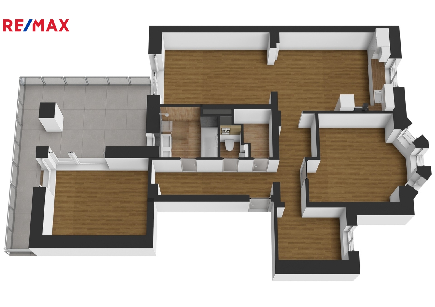 Nově rekonstruovaný byt s dispozicí 4+kk o výměře cca 100 m2 a nadstandardní terasou cca 26 m2 se nachází v 1. patře nově rekonstruovaného domu v Plzni na Slovanské ulici.